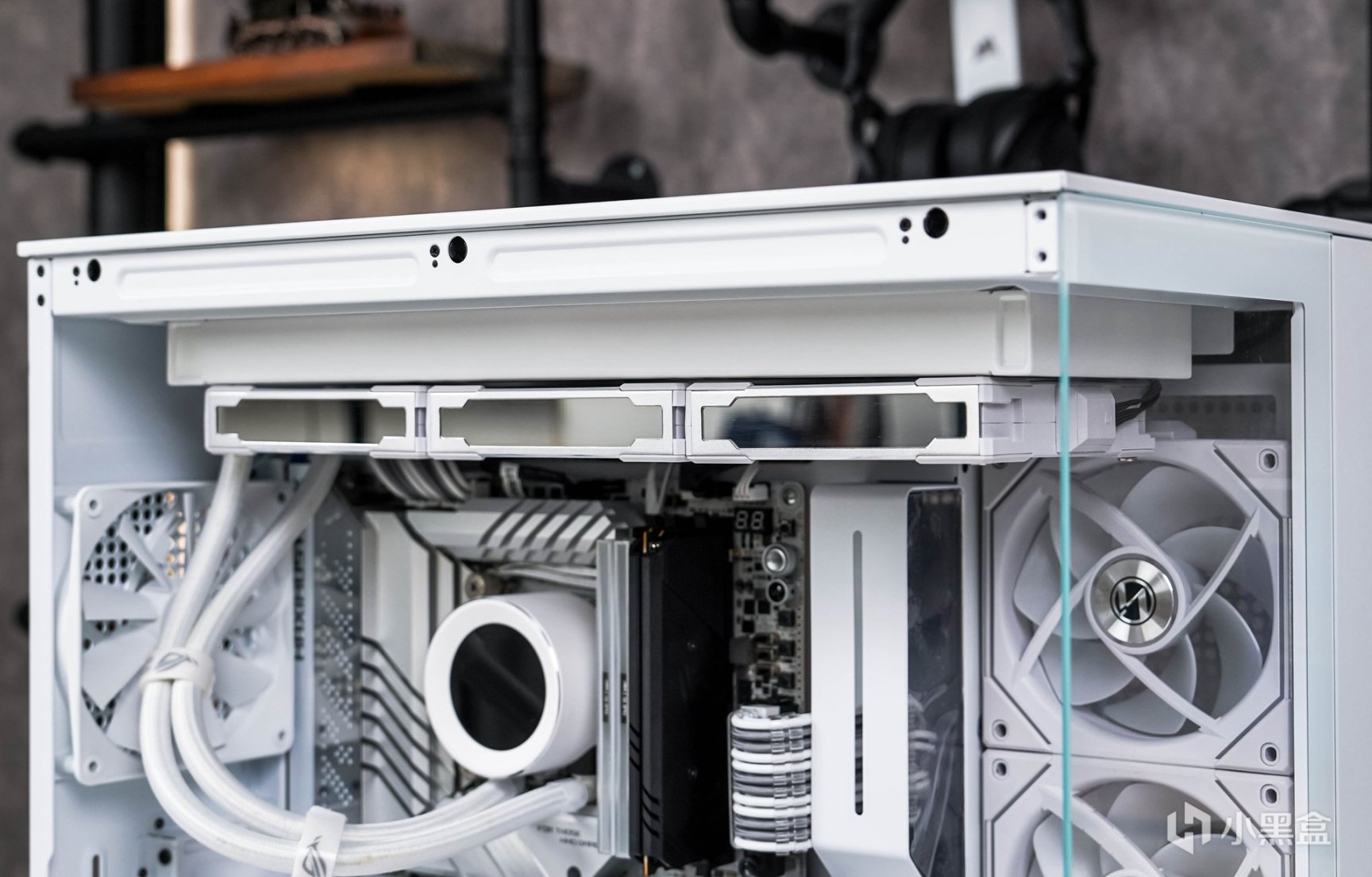 双腔式机箱的优势就是风道可以跟随使用者的喜好来随时做出进风和出风的更改,从而达到最理想的散热效果。并且机箱上下预留的安装空间并不算太过局促,这样对机箱内部散热循环没有过多的遮挡。CPU散热器限高165mm,机箱内部可支持安装3个360mm规格的冷排安装。