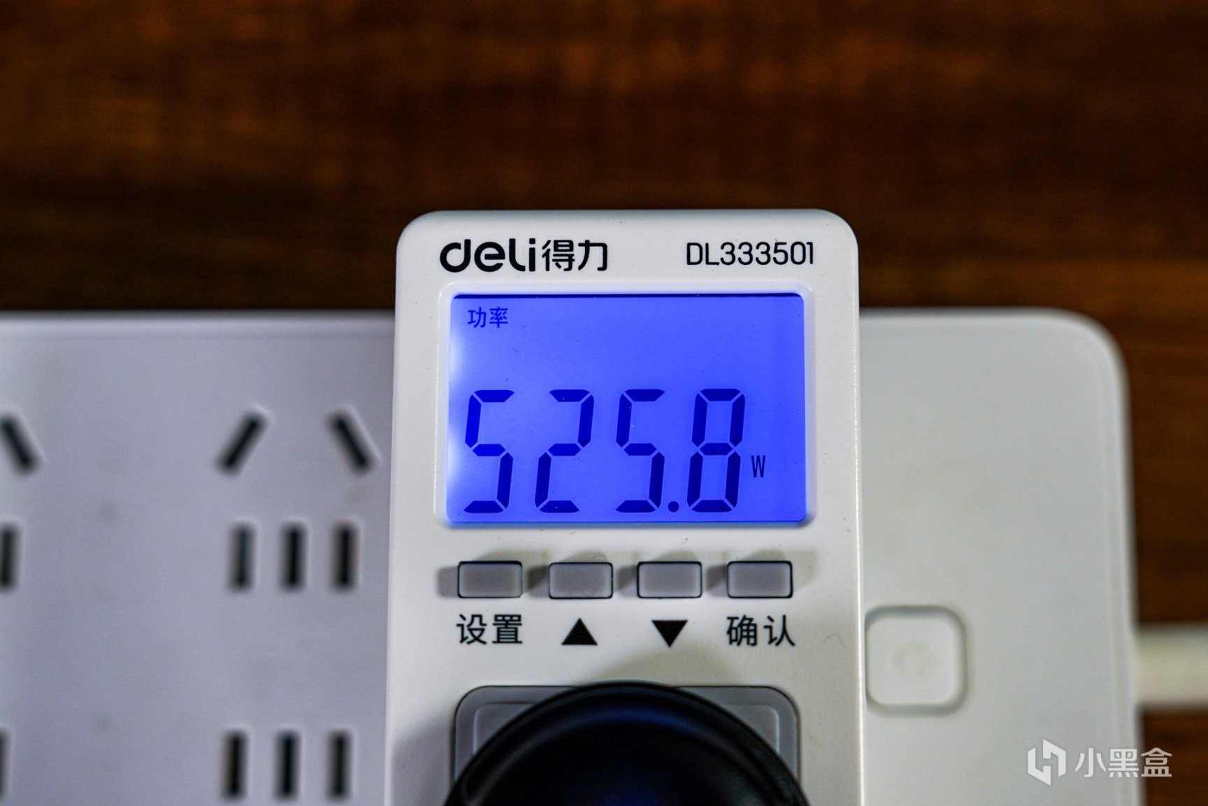 游戏进行时的功耗实测:CPU+GPU同时运转时实测功耗525.8W。
