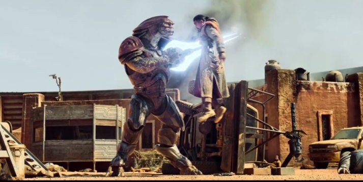 然後就是斯巴達戰士們的表現,只能說該劇的投入,至少還原了遊戲裏的道具和裝備:雷神之錘戰甲、電漿手槍、針刺槍,都和遊戲裏的細節完全一致。但是,奇怪的地方又來了,26世紀的反抗軍使用AK47、加特林打不穿的外星護甲,士官長卻拿起來就能輕易殺死外星人……作爲光環忠實粉絲的筆者,可從來沒聽說過斯巴達戰士可以爲武器“附魔”啊?
