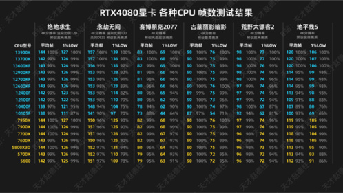 CPU还是回到最有性价比的I5-12400F,我猜肯定有人要说“啊,这个12400F怎么带的动呢?”。我知道你很急,但我也急着解释,让我先急。B站UP主天才赵德柱有做过测试,对于12400F带4080和使用更好的CPU之间的差距。