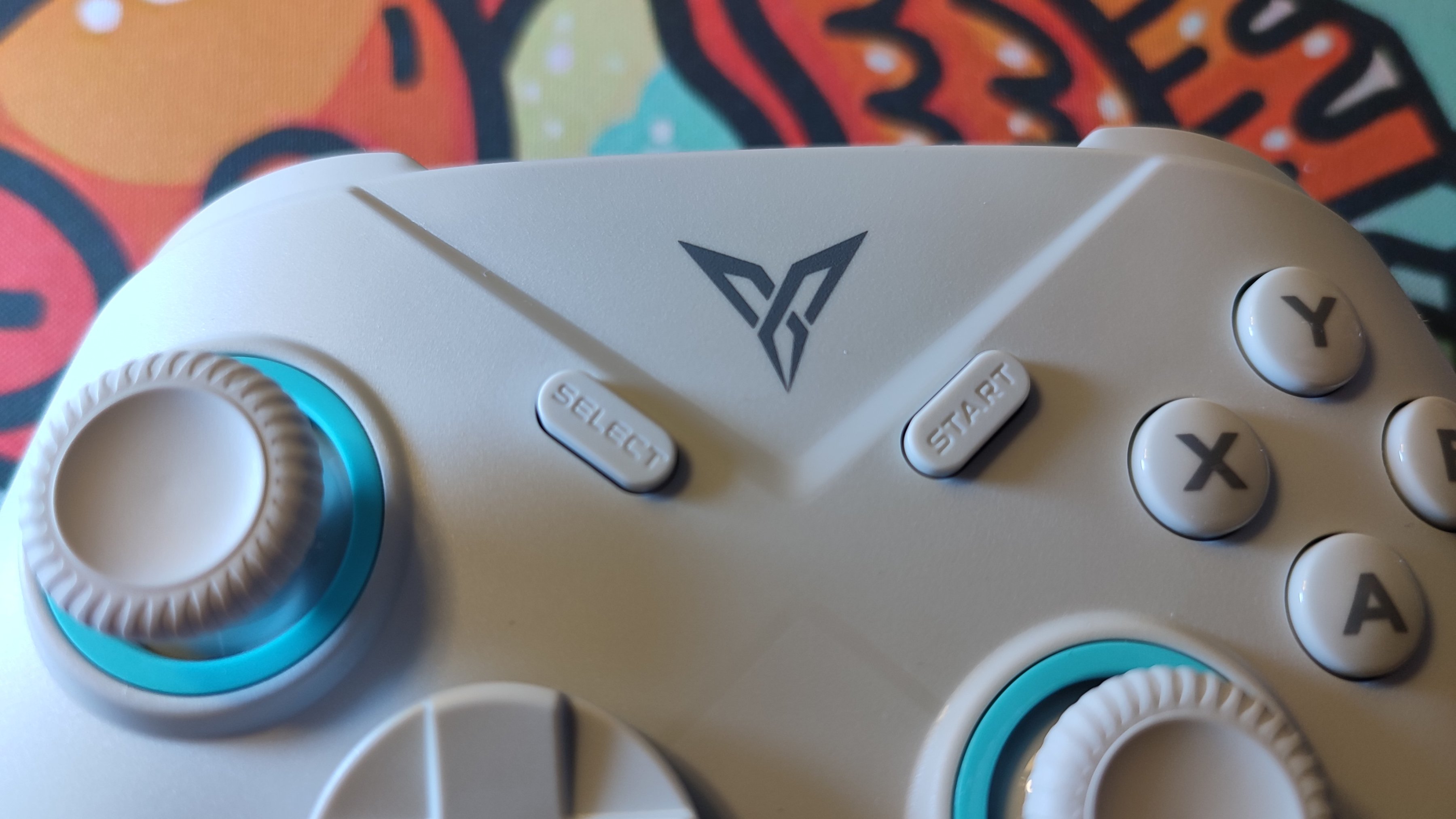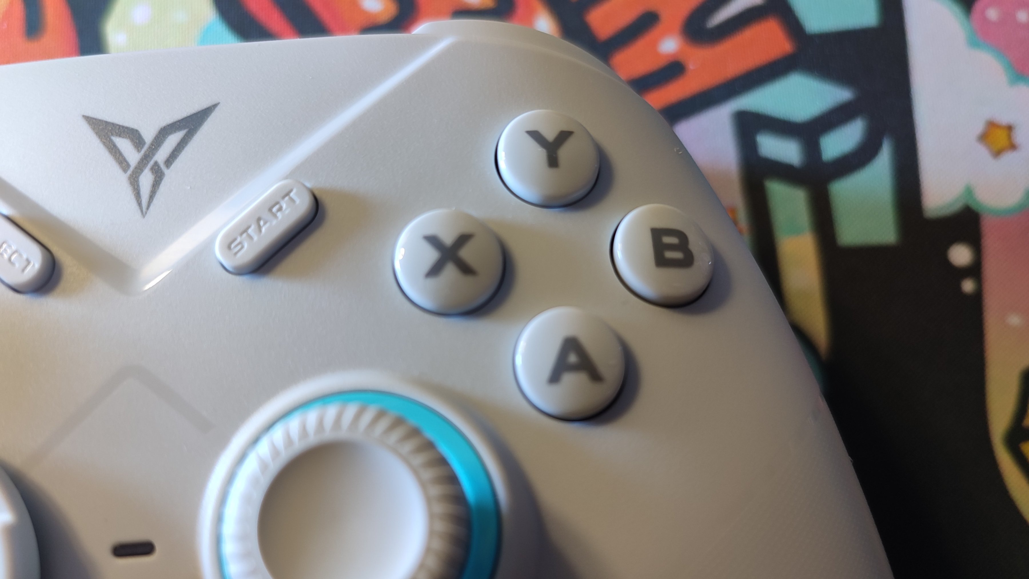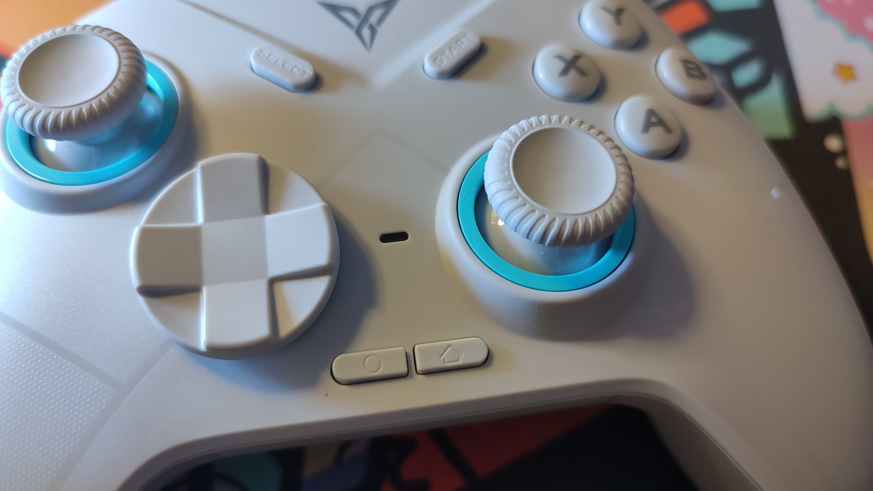 冰原狼採用的是Xbox手柄的佈局,所以之前使用過xbox佈局和ns佈局手柄的玩家可以很好的適應這款手柄,不過不同於ns手柄的按鍵佈局的點在於:AXYB鍵。最上方則是飛智的LOGO,很可惜的是不能發光,滿足不了我渴望光污染的心。