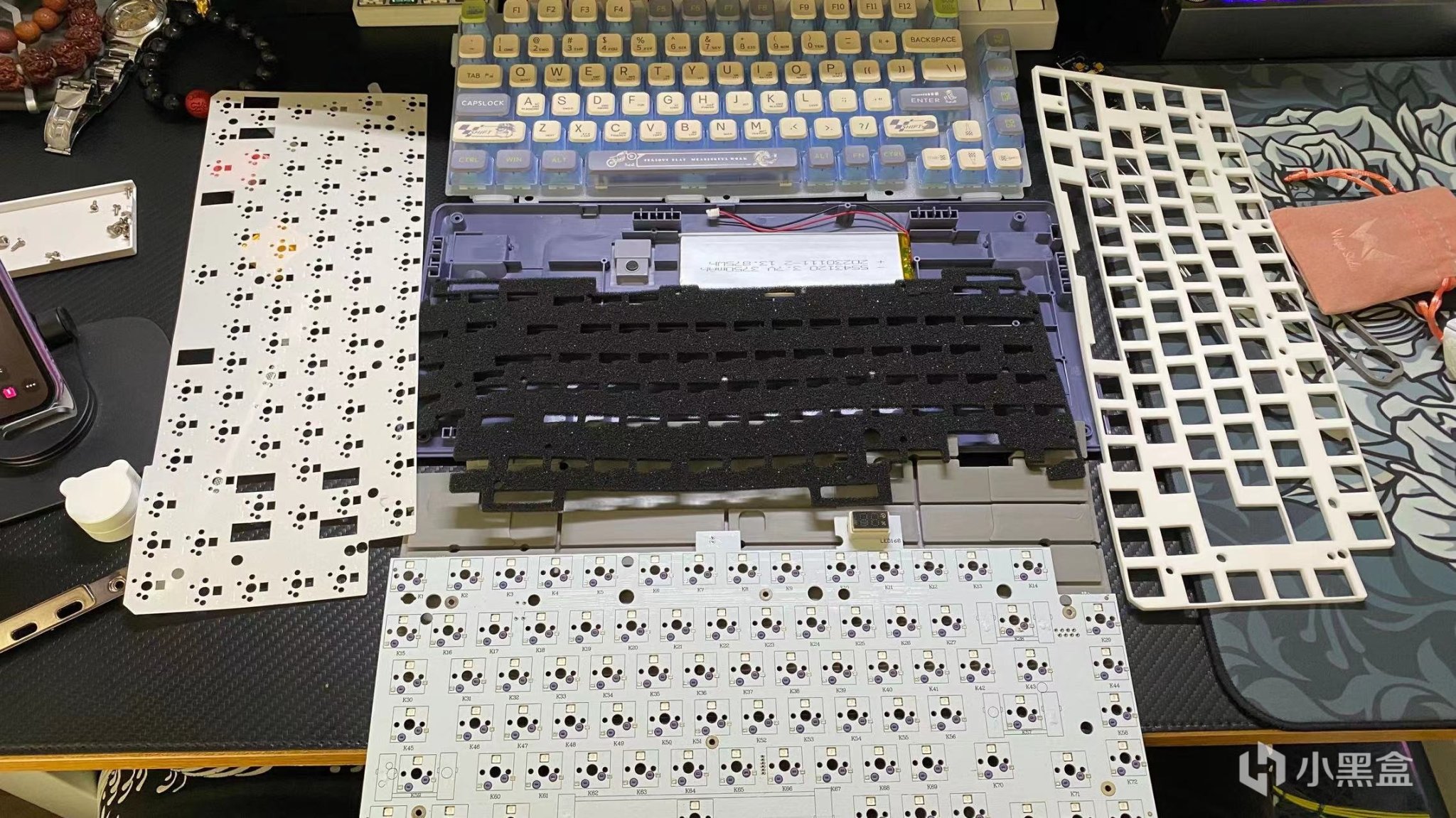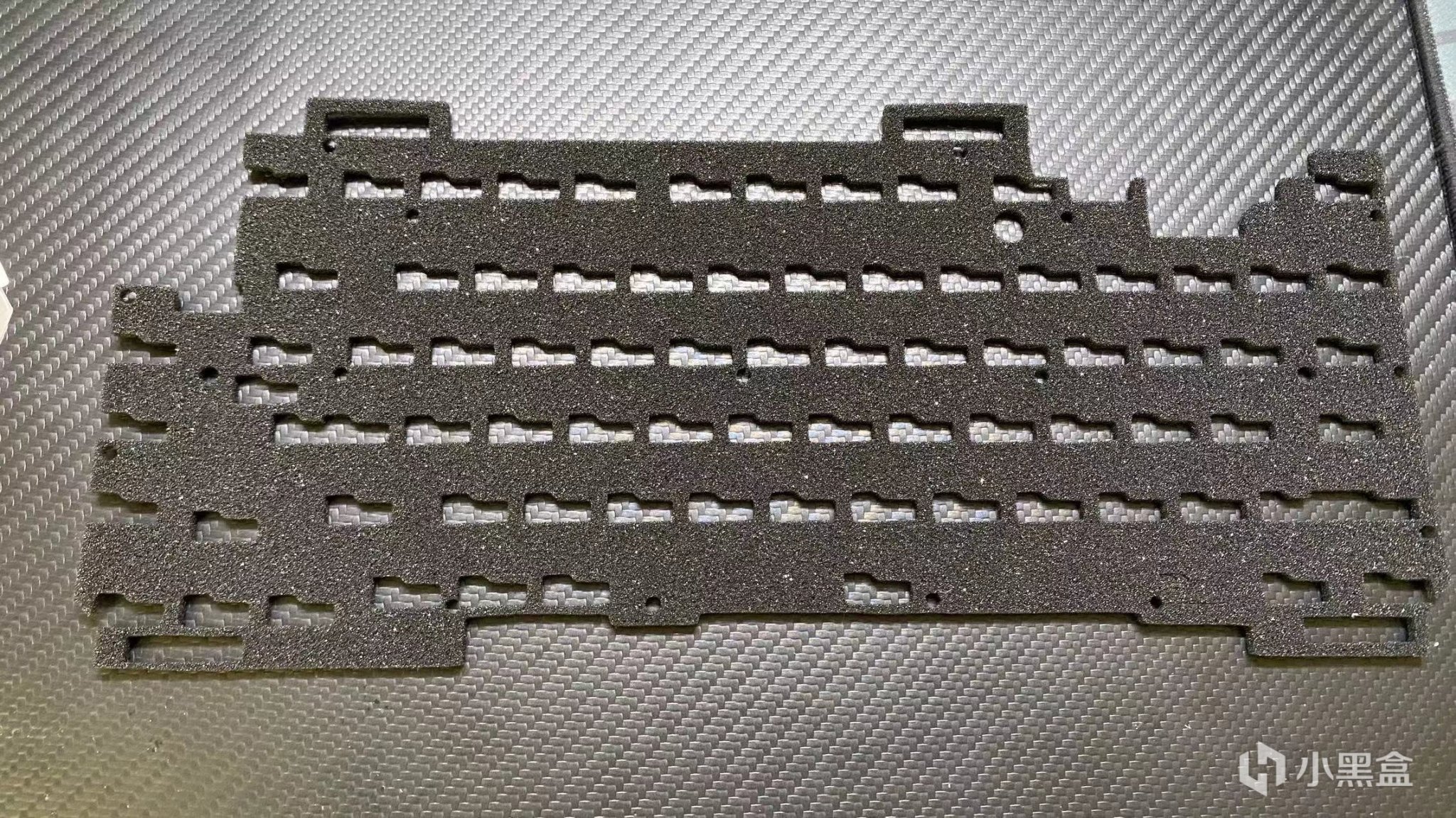 再就是硅膠底棉了,如你們所見,硅膠底棉是單獨開槽的,這樣的好處就是,他可以使鍵盤底部填充的更加緊密,進一步的減小了鍵盤的空腔音,但是缺點也是隨之而來的,那就是硅膠材質硬,會讓gas 結構更硬一點點。