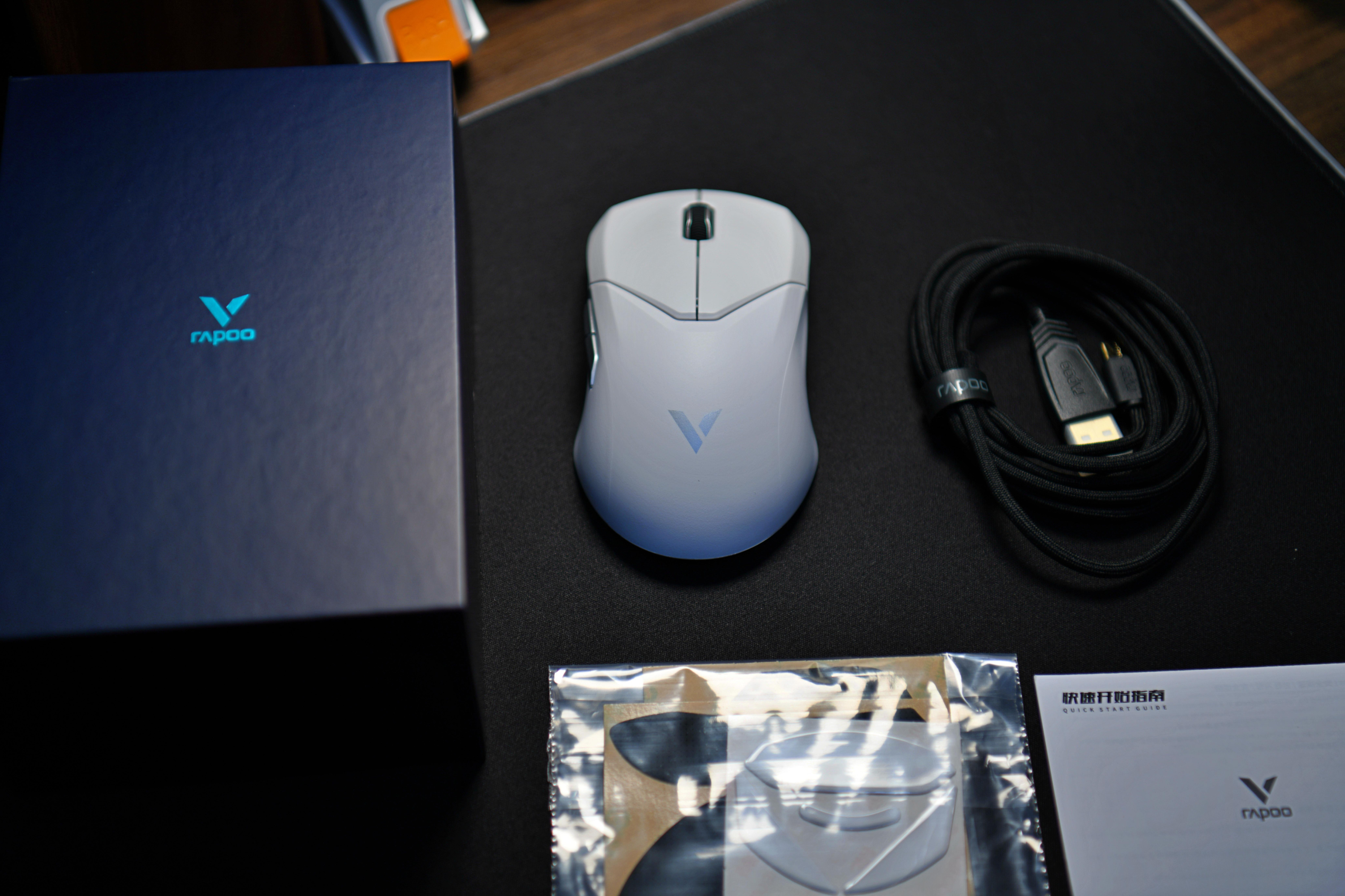 雷柏VT9游戏鼠标支持有线、无线两种模式,配件丰富,附赠一副按键防滑贴和备用脚贴,可以有效防汗,附赠一个USB转换器,可当作数据线延长转换器使用。