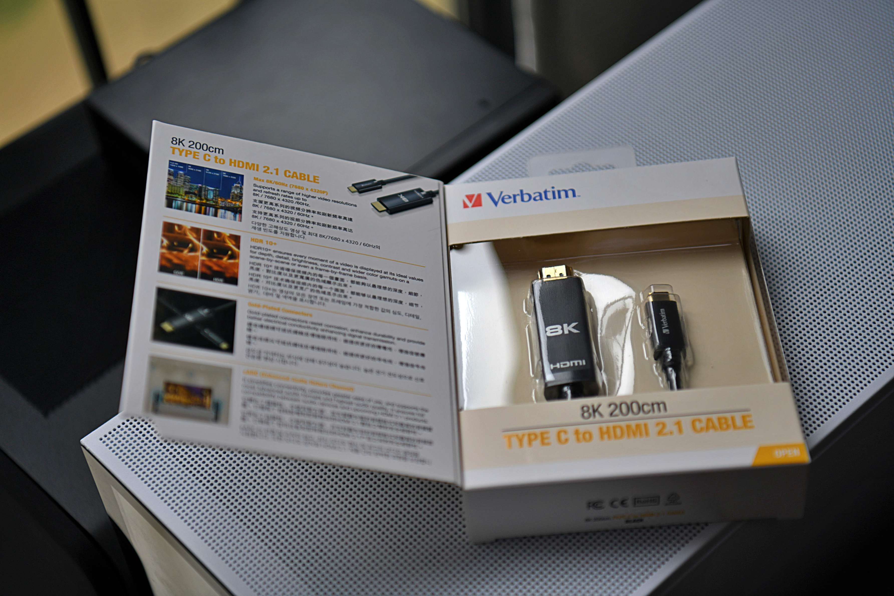 为了追求更好的视频效果,我配置了一条威宝8K Type C to HDMI 数据线,这条数据线支持超高清 8K 3D显示、具有HDMI Ethernet通道,配备了增强音频回传通道、支持HDR+高动态视频。