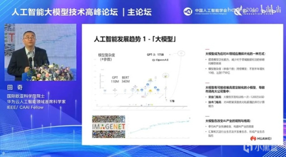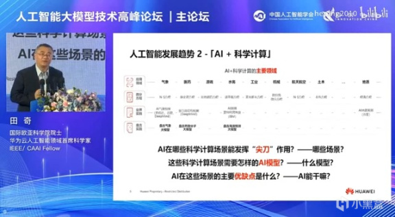 田奇介绍未来华为在人工智能发展重心,将转到大模型领域,区别于其他中国互联网公司,华为不想盲目追求对标ChatGPT,而是通过自研大模型去挖掘AI落地的科学计算场景,将技术和商业结合起来。