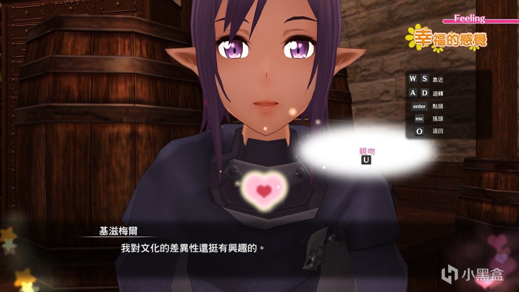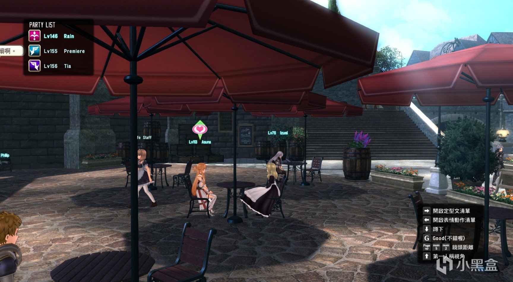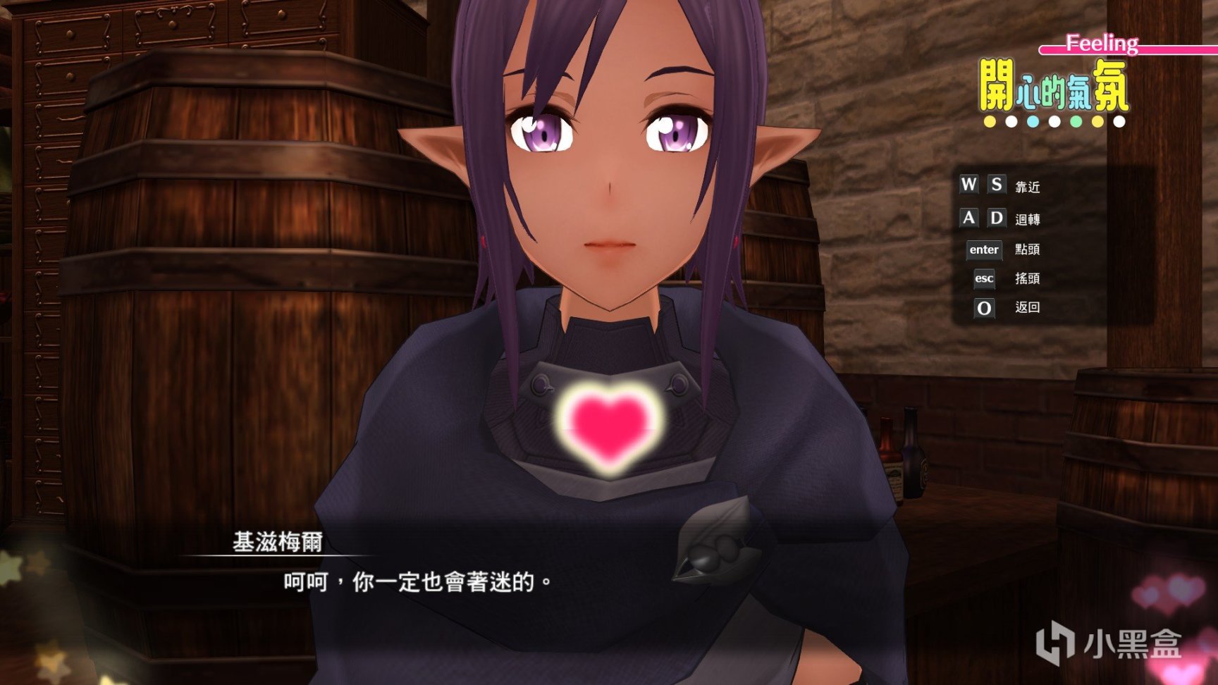 然后在散步时将角色带到能够触发爱心的地方,如图,Asuna的头上就有爱心标识,这时候与其聊天(PC默认键位是Enter)即可进入亲密对话