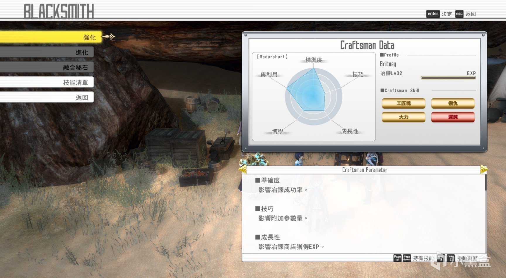 里面营地里有一位女性NPC铁匠,其材料返还率和成功率都十分有所保障。