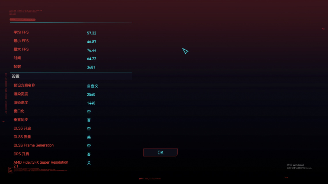 賽博朋克2077平均幀數57幀