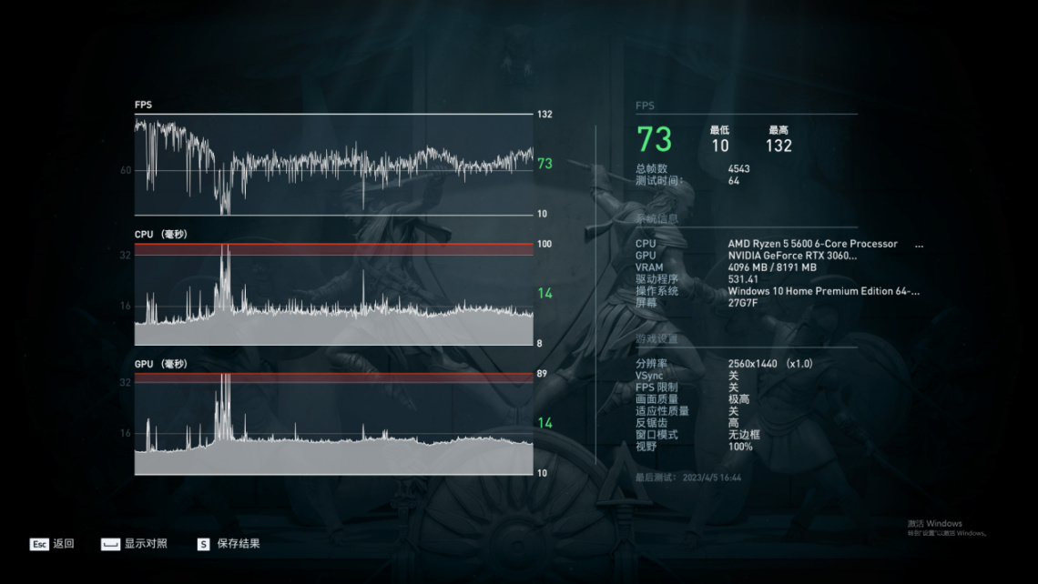 刺客信條:奧德賽平均幀數73幀
