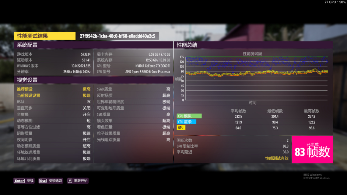 極限競速:地平線5平均幀數83幀