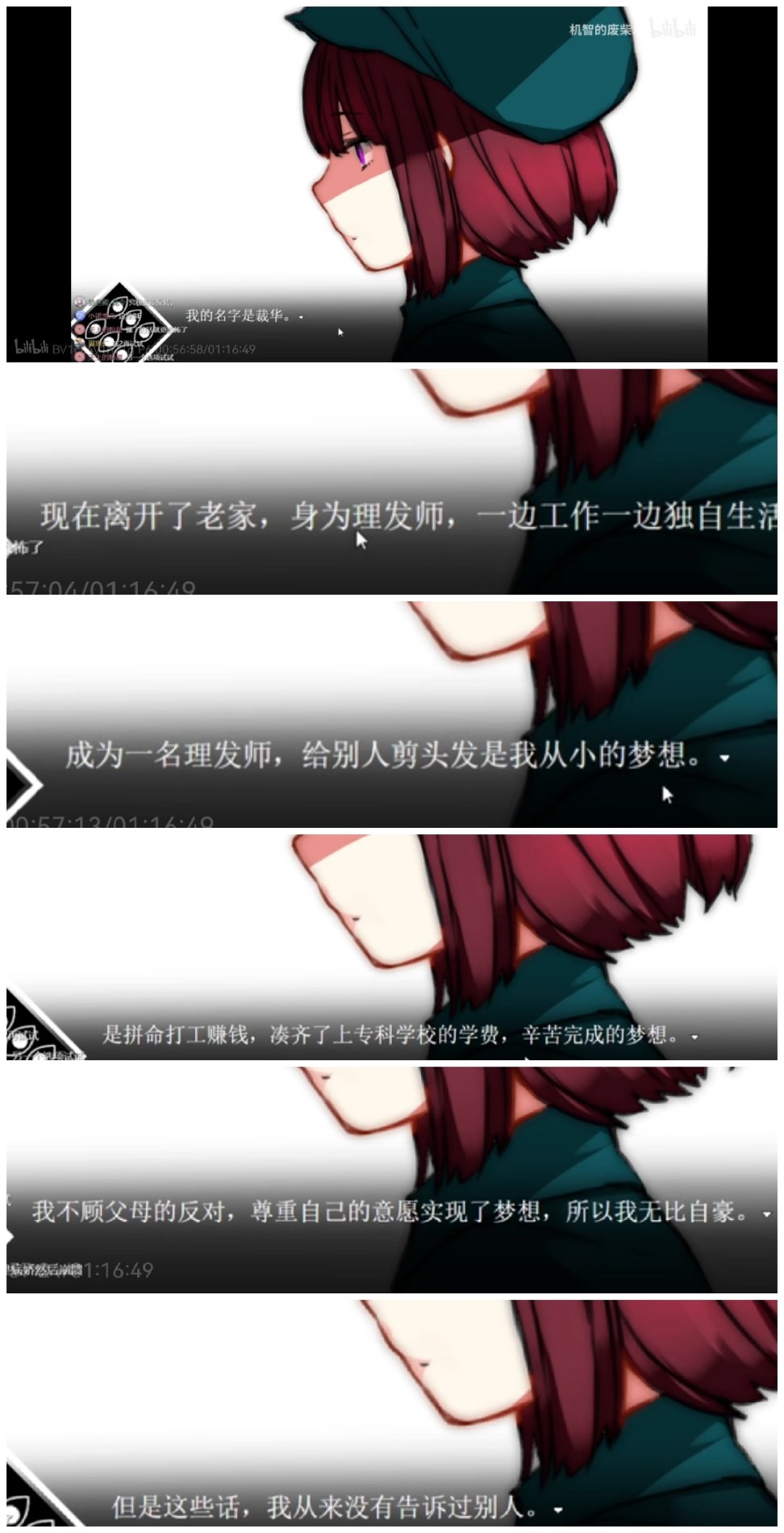 压抑的六个故事,但是作者也留了一线转机,在游戏中代表着作者的仙灵给了玩家一次窥见平行世界中她们的“另一种可能”————————