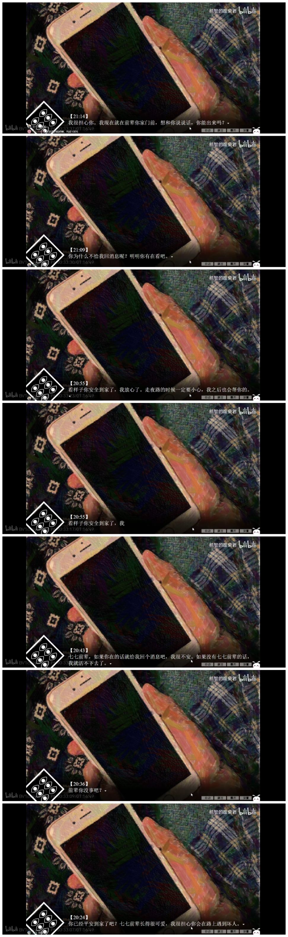 希望没有了,理想破灭了,裁华短暂人生的一切努力都化为了泡影。罪子在房间里看到了这一幕,但是她并没有勇气冲出来面对两人,这也是后来罪子始终自责愧疚的原因。心中埋藏着这份情感,她在学校和打工处遇到了上了和姐姐一样努力一样温柔一样可爱的前辈—七七(男主女友),变成了一个类似跟踪狂的变态蕾丝。(这里图片顺序倒了,见谅)