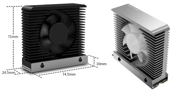 現在,九鯊推出了新一代M.2 SSD散熱器“M.2 Four”,高度達到了71毫米,已經超過了半高式顯卡,同時寬度爲74.5毫米。