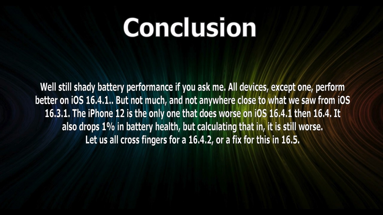 YouTube 頻道 iAppleBytes 測試顯示,iOS 16.4 更新導致多款iPhone機型電池續航明顯縮水。而在最新一期視頻中,通過實測發現 iOS 16.4.1 並未修復這個問題。