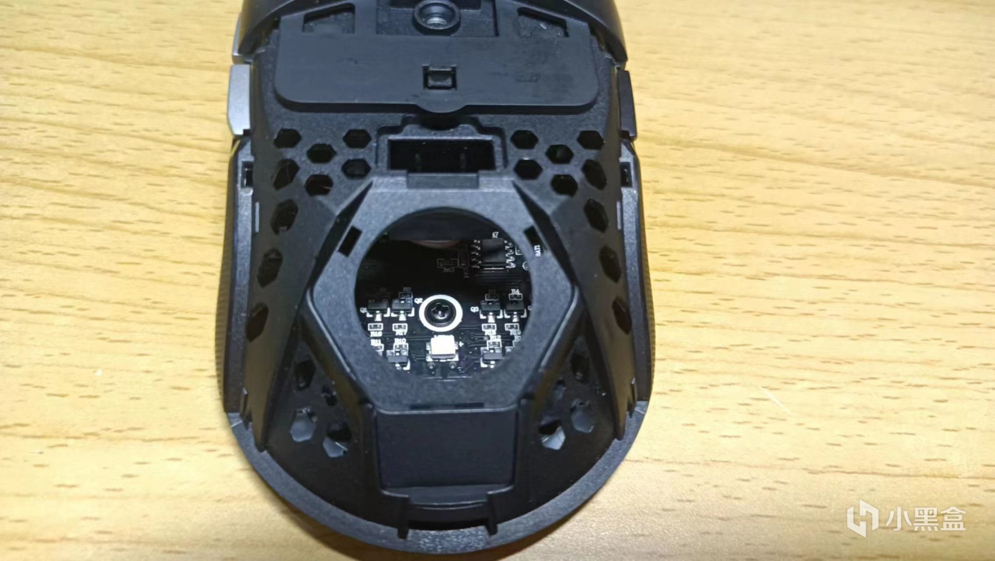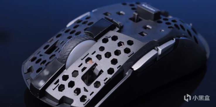 鼠標重量是80g,並不算很輕,打開面板會發現裏面其實是鏤空的設計,有效減輕重量。面板這次不是磁吸,不過打開非常簡單,配置器也藏在中間的位置。但是還是建議不要在rgb下打開面板,裏面燈光直射非常刺眼。