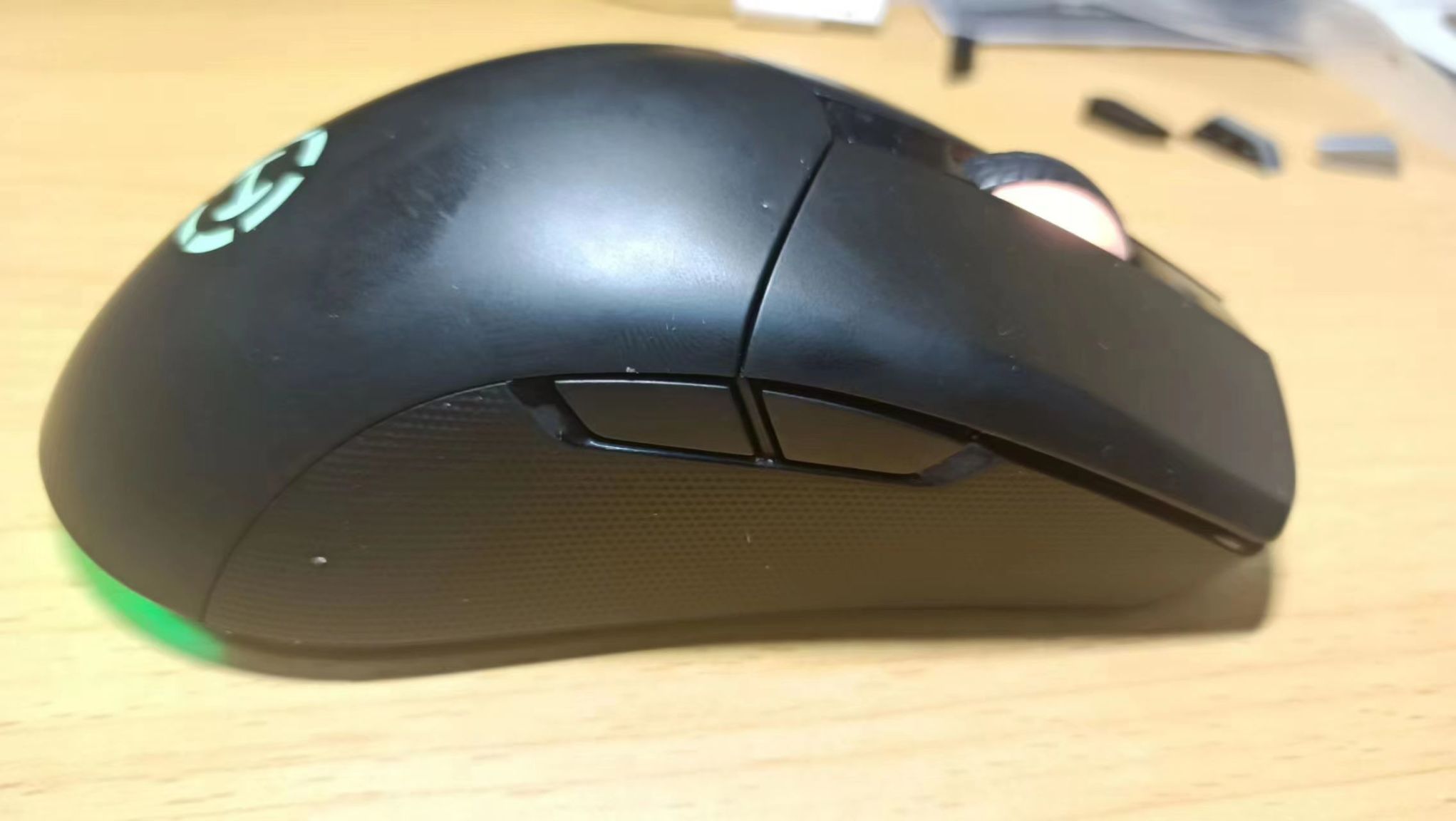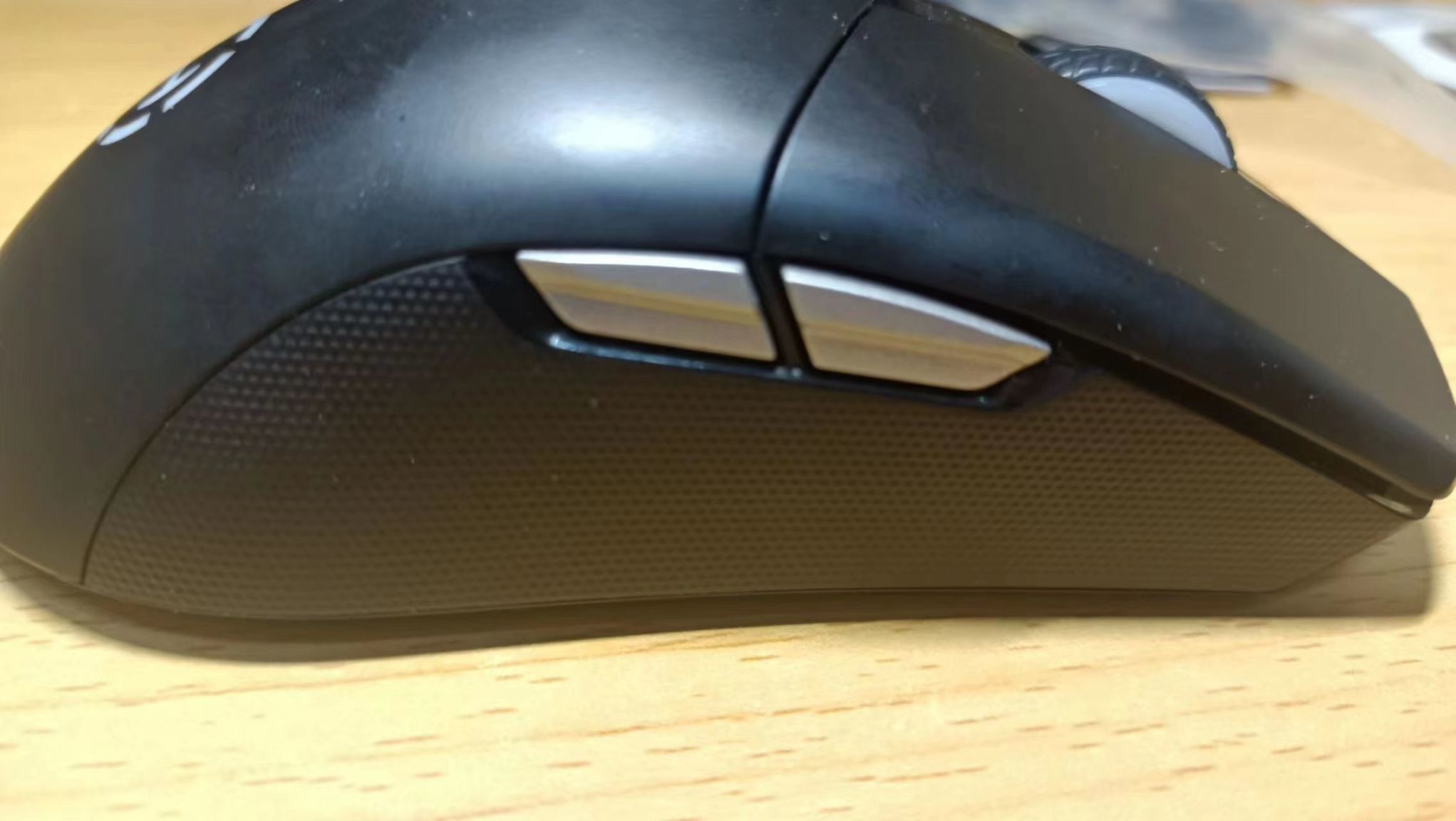 機身爲磨砂塑料材質,手感比較乾爽不打滑。不過就是太光滑,不太耐髒,如果手指有一點點油漬,鼠標機身馬上就會顯示出來。