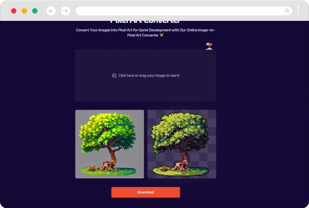 Pixelicious是一个在线图像转换器,可以将您的图像转换为像素艺术,用于游戏开发。您可以点击网站上的链接或拖动图像以开始使用它。该网站的用户界面非常简单,易于使用。它还提供了一些有用的工具,例如调整图像大小、旋转和翻转等。