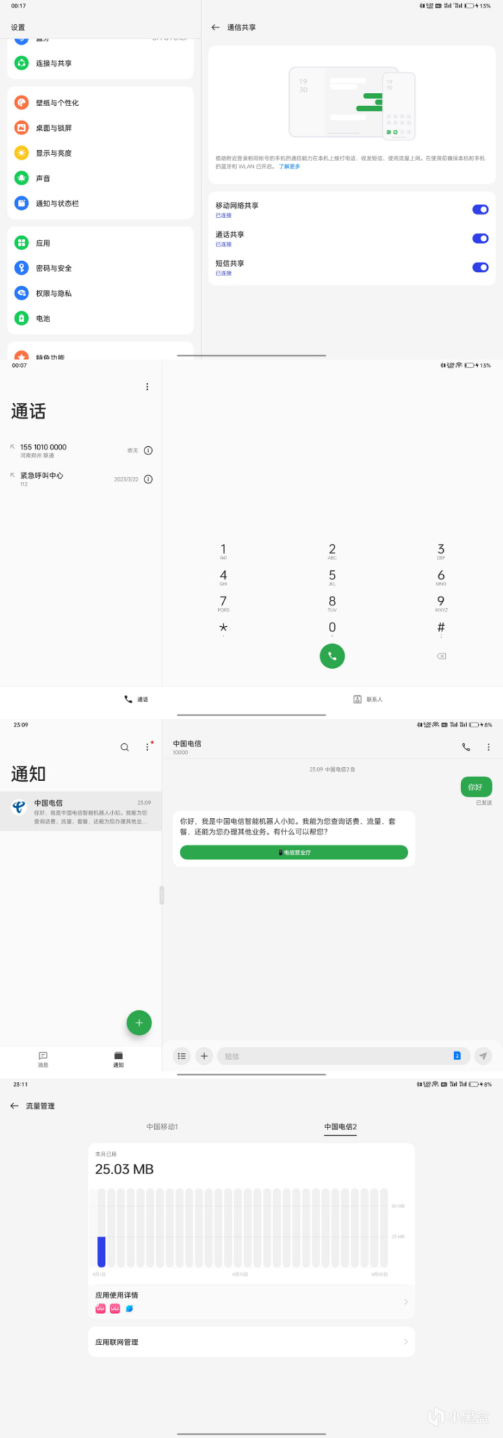 通信共享是重中之重,手机的通话、短信、网络都可以共享到平板上来。