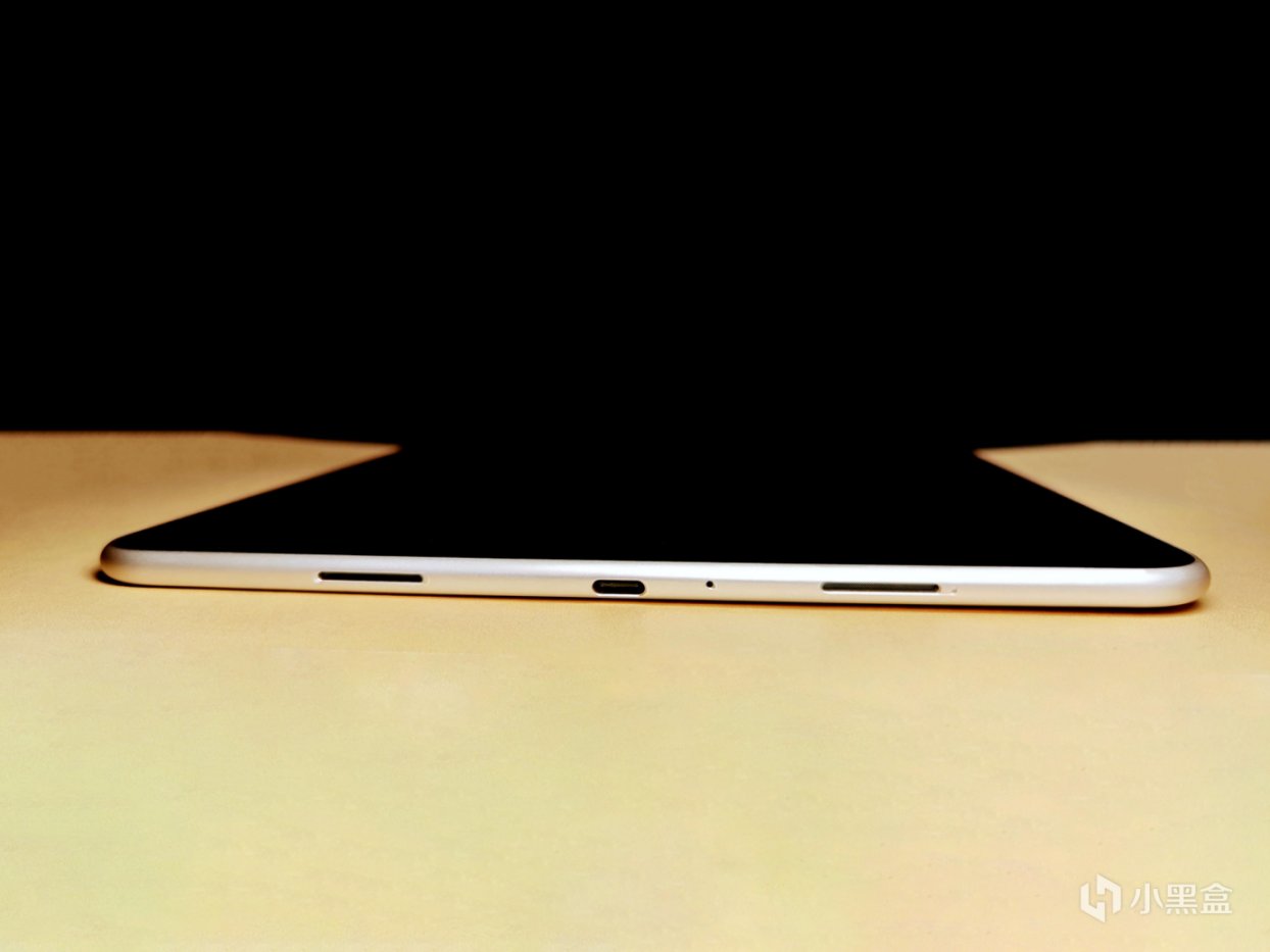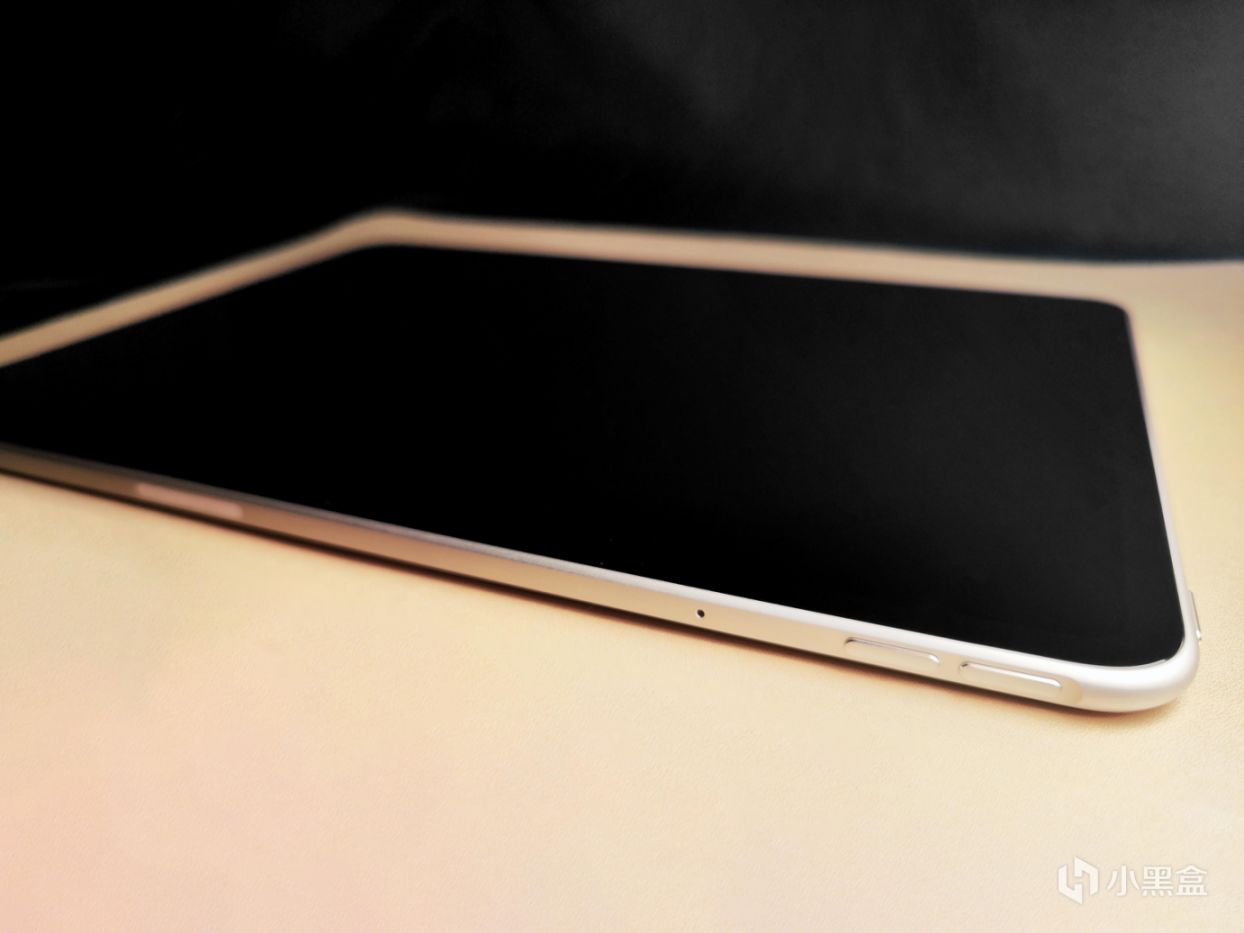 边框后盖全金属一体化机身,边框一改前代的直角边框,更换为了圆润的设计。将前置摄像头一侧定义为顶部,边框从左到右为音量键、麦克风开孔、手写笔磁吸连接位置。