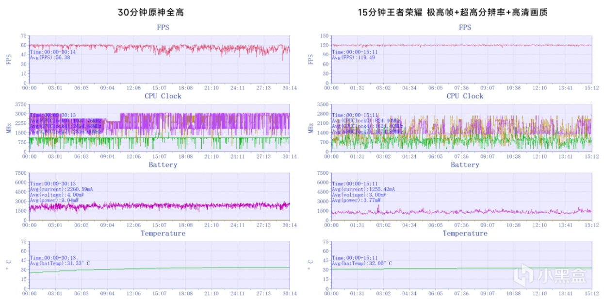 落实到具体游戏表现上,30分钟原神全高平均帧率56.38,10分钟开始过山车幅度明显加大了一些,但比起前代的骁龙870进步不小。