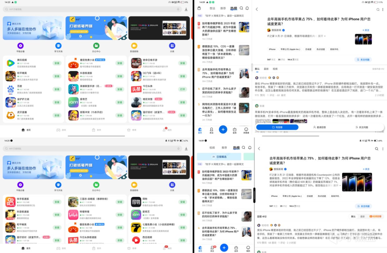 无论是桌面图标的间距布局,还是应用内列表信息的展示,亦或是左右分屏操作,OPPO Pad 2都比包括此前自家安卓平板在内用得更加舒适自由。