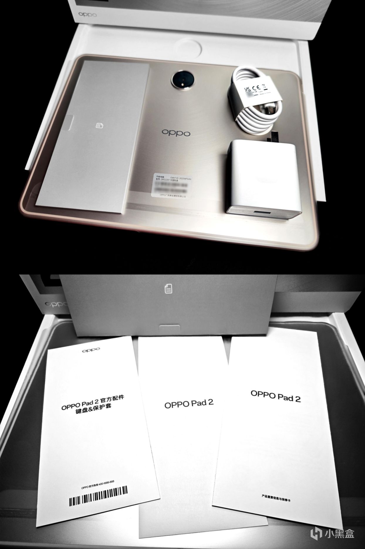 侧面仅留下了OPPO Pad 2字样,更多的产品详情信息则用贴纸粘贴在了盒子的底部。