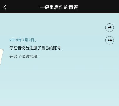 同時,App首頁還上線了“一鍵重啓你的青春”頁面,可回顧你賬號此前收藏的音樂,併成爲音悅臺的“終身榮譽會員”。(不過App上安卓用戶好像沒有一鍵迴歸,評論區的朋友可以告訴我)