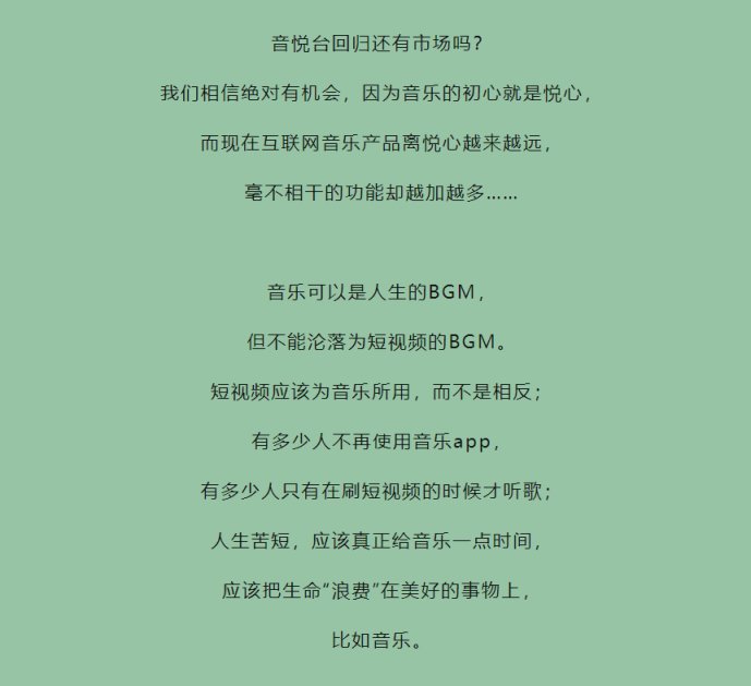 至於爲什麼消失又回來,音悅臺官方也在公衆號發了長文表示,選擇“冬眠”,根本原因是音悅臺丟失了初心,並在戰略戰術上出現了衆多失誤,迫於無奈才選擇了短暫離開。