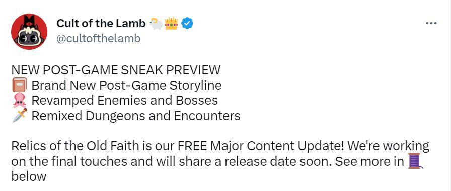 基地建設動作Rogue遊戲《咩咩啓示錄》今天透露了下一次大型更新的內容,下次更新名爲“舊信仰的遺物(Relics of the Old Faith)”,目前暫未確定上線日期。