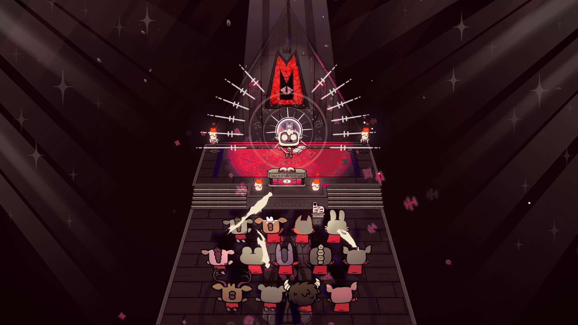 《咩咩啓示錄》中,玩家將扮演一隻因被陰鬱不祥的陌生人拯救從而免於一死的被附體的羊羔。爲了報答救命之恩,玩家需要以那人之名組建一支忠誠的追隨者隊伍。在這片虛假先知橫行的土地上,你要建立自己的教派,遍歷大陸上神祕無比、風格迥異的各個區域,籠絡一羣篤信森林的忠誠追隨者,廣散你的真言,最終一統全境,成爲唯一的正教。
