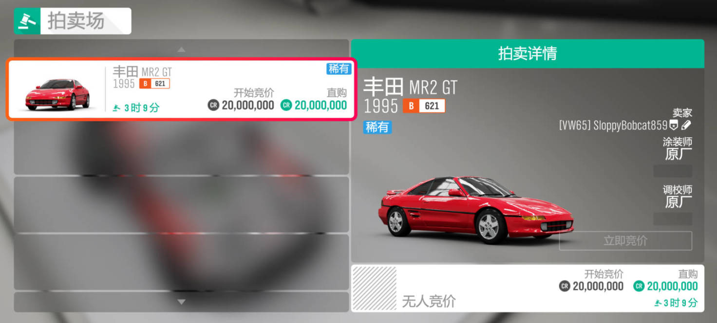 獎勵車輛爲:1989款豐田 MR2 SC(稀有車)