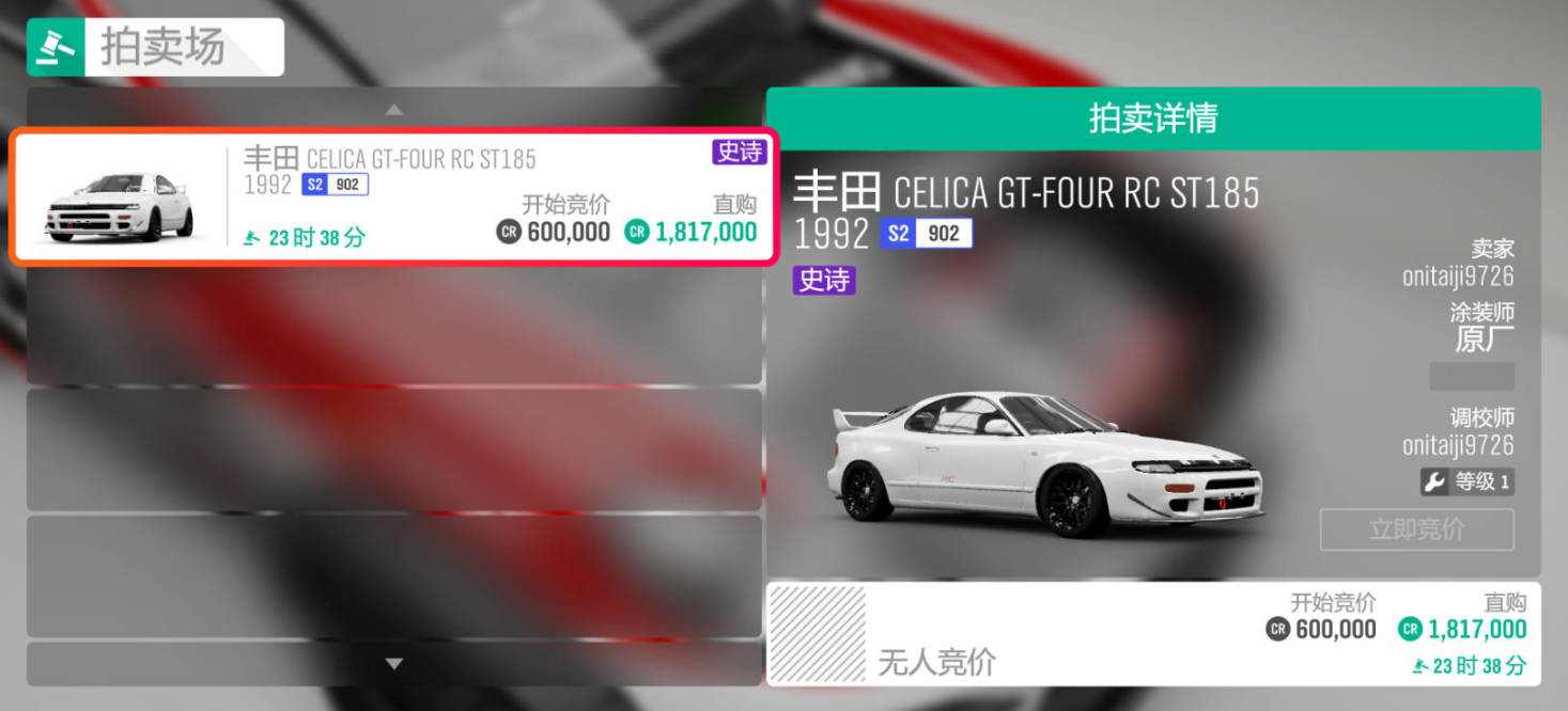 獎勵車輛爲:1992款豐田 CELICA GT-FOUR RC ST185