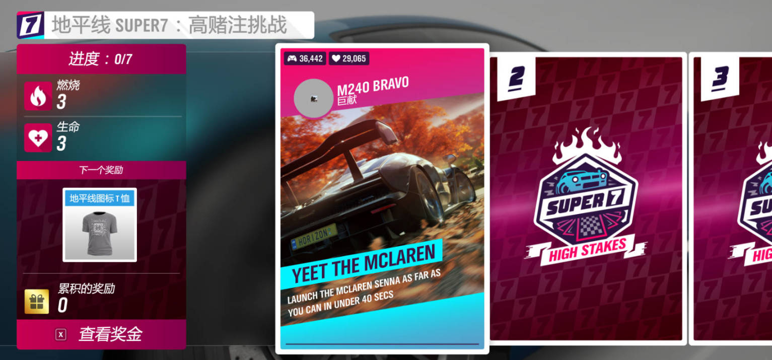 本週地平線SUPER7挑戰獎勵爲地平線圖標T恤,這遊戲稀有衣服比稀有車輛還難獲取,沒有的建議做一下!