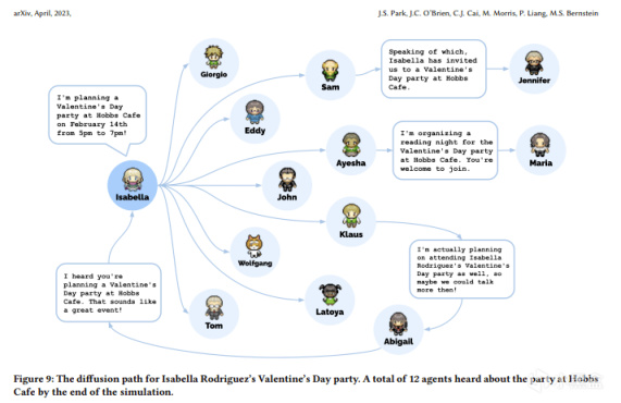 在這個AI小鎮中,角色甚至已經有自己的組織想法,比如他們會發起一個小鎮鎮長的Election活動,這些AI會私下討論,誰更有機會贏得大選,可見AI之間已經組成了一個非常複雜的組織社會,並且能夠根據記憶做出符合自身利益的判斷。
