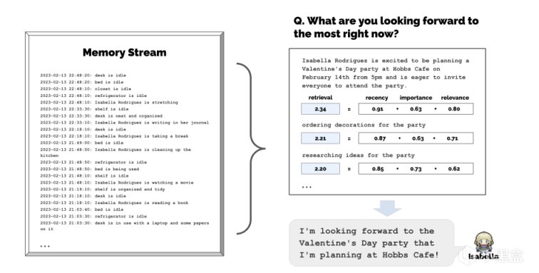 2023年4月13日,斯坦福最新成果爆紅,他們與谷歌聯合構建了一所包含大學、公寓、咖啡館、書店的虛擬小鎮,並且在小鎮中用ChatGPT構建了25個虛擬的遊戲AI角色,這些小人會像正常人一樣生活,他們之間會對話、合作甚至是打架、博弈,也有自己的價值觀和看法,最重要一點,斯坦福通過記憶流技術,讓這些小人擁有記憶和情感,這些“人設”會影響小人日後的所有決策,這項技術也被不少玩家視作是遊戲界的重大變革!