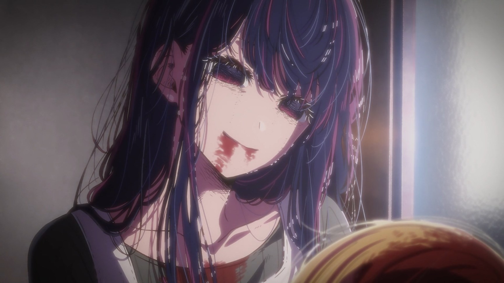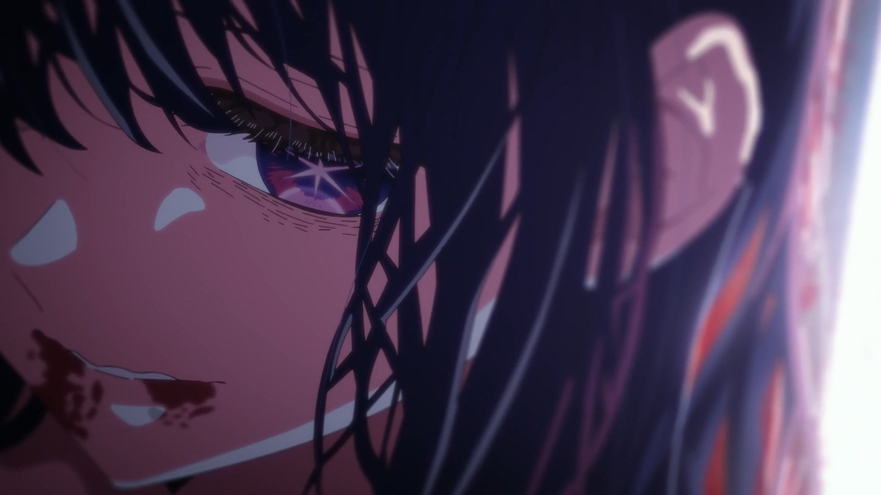 还有就是星野爱被狂热粉丝刺杀时候激昂的自白,如同舞台剧一般。瞳孔熠熠生辉,语言慷慨激昂。从闪烁最后化为死灰。