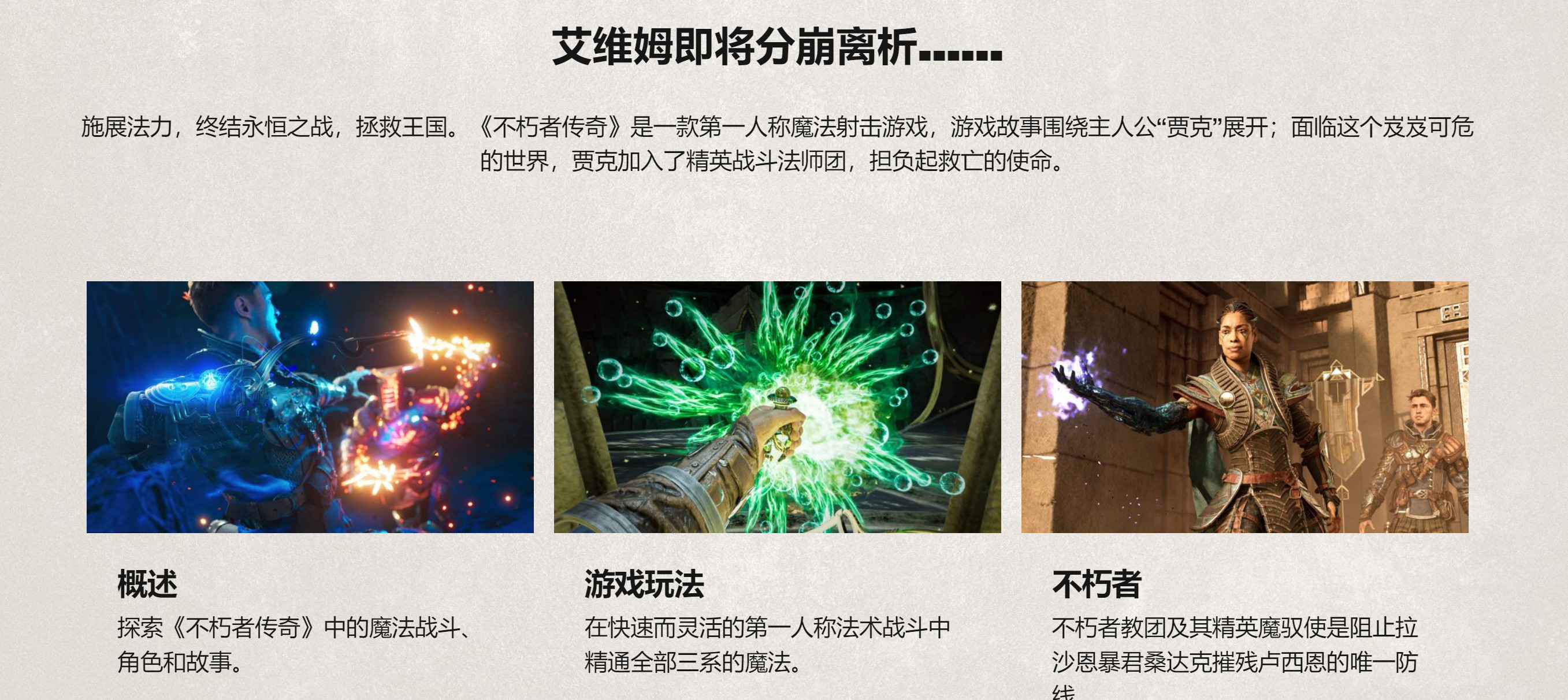 《不朽者传奇》是一款第一人称单人魔法射击游戏,讲述 Jak 加入战斗法师菁英组织,从深渊边缘拯救世界的故事。