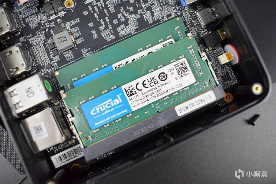主板上元件的排布,一如既往地整齐,甚至要比许多大厂的笔记本电脑更加精细,不会出现莫名其妙的飞线;用料方面也十分扎实,散热胶、大尺寸风扇一点都不吝啬。虽然这次SER5 Pro 5800H搭载的是DDR4内存条,但16GB*2合计32GB的双通道大内存方案,还是很让人惊喜的。