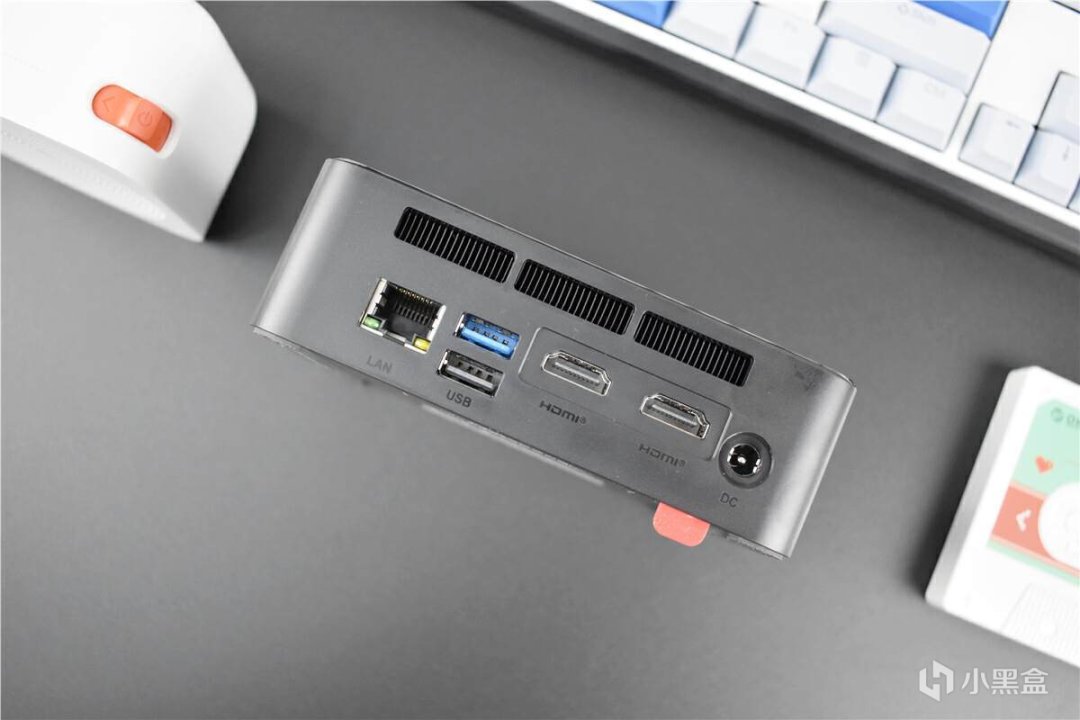 背面依旧保留了千兆LAN网口,同时预留了一个USB3.2Gen2插口、一个USB2.0插口、两个HDMI插口和电源适配器插口。之所以有一个低版本的USB2.0,是为了使无线键鼠的信号更加稳定,而HDMI插口都是支持4K 60Hz高清视频输出的,整体来看预置孔位非常充分。