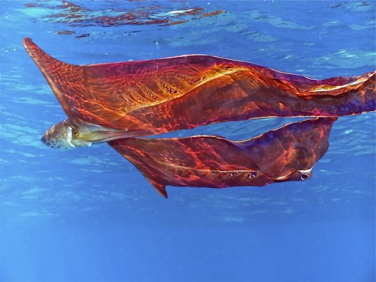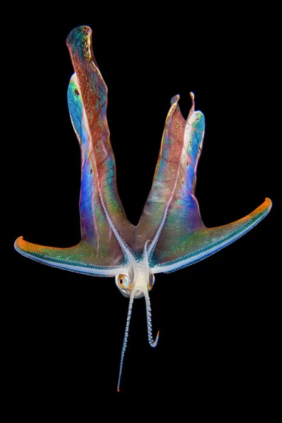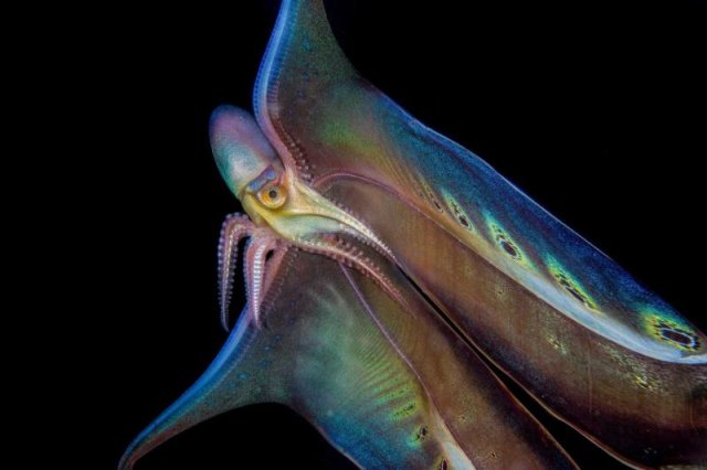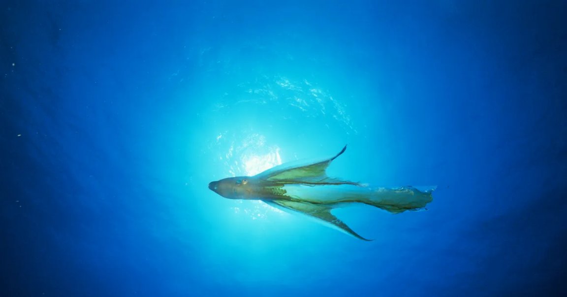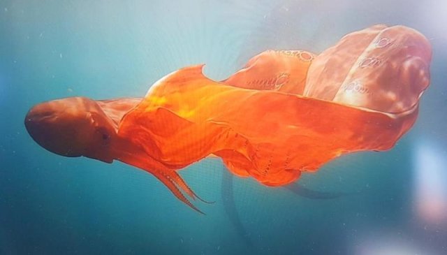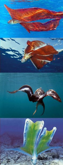 因为这个时候,很像一张在海中飘动的大毯子,故而得名毯子章鱼。
