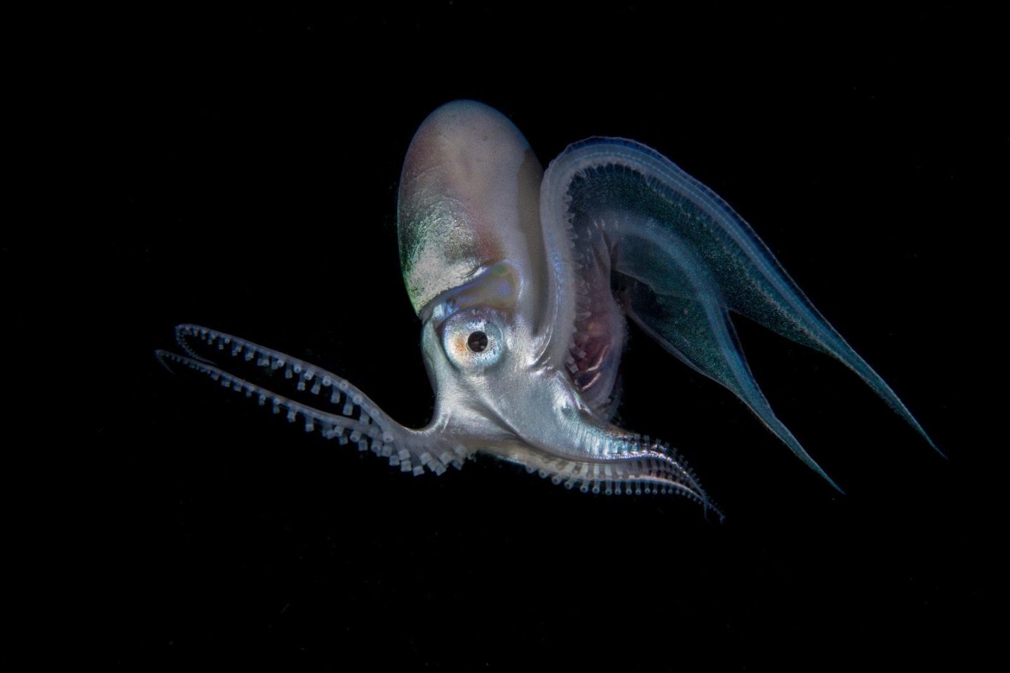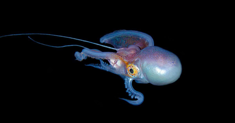 毯子章鱼的一生(寿命为3~5岁)都漂浮在开阔的海洋中。