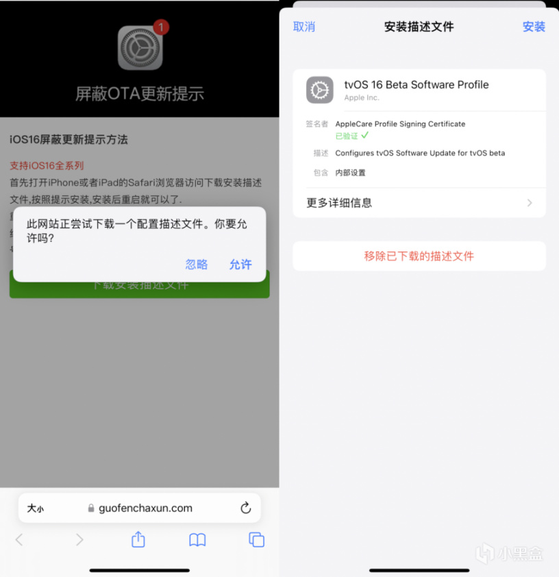 当然,有同学表示这样依旧会出现烦人的“小红点”,强迫症的话也可以选择通过给 iPhone 安装 tvOS 或 watchOS 的描述文件来「欺骗」iOS 的检测服务器,从而实现屏蔽系统更新。