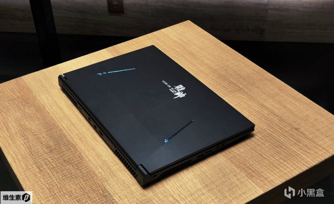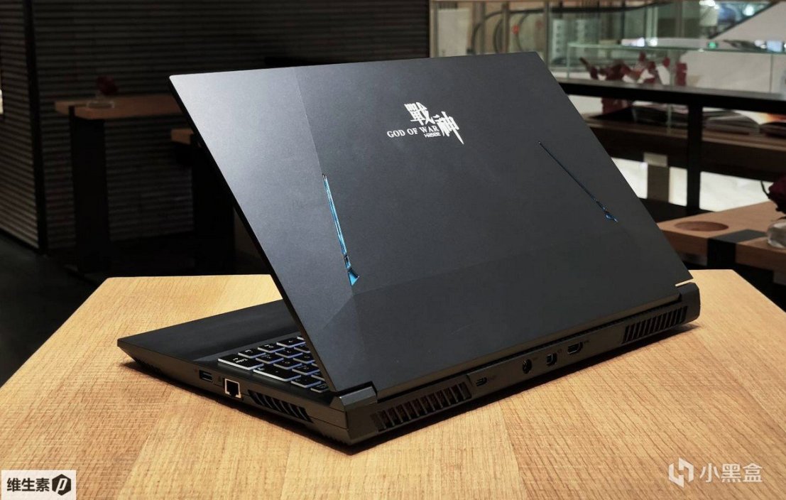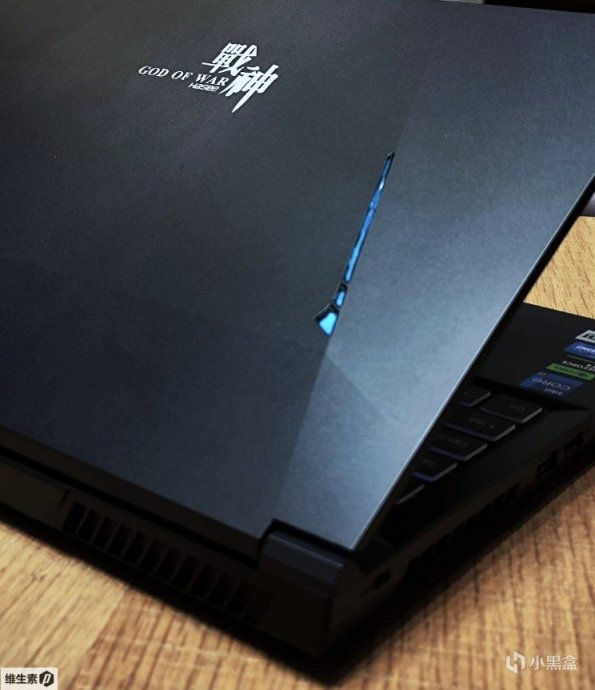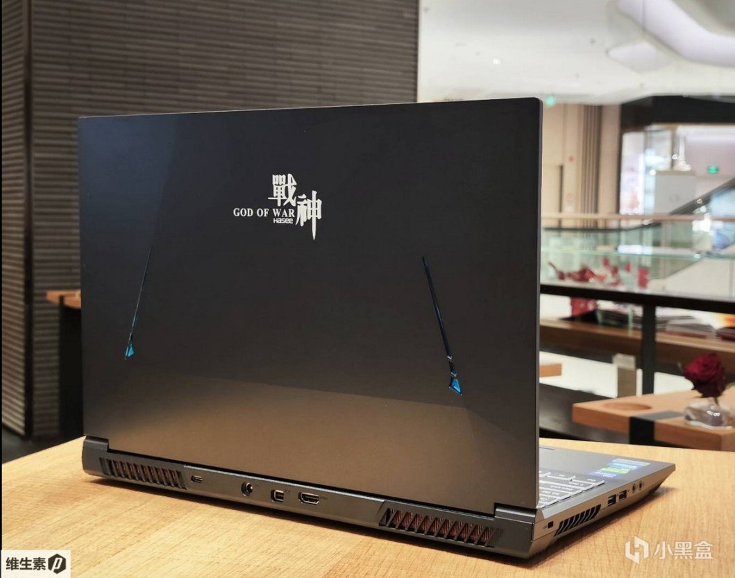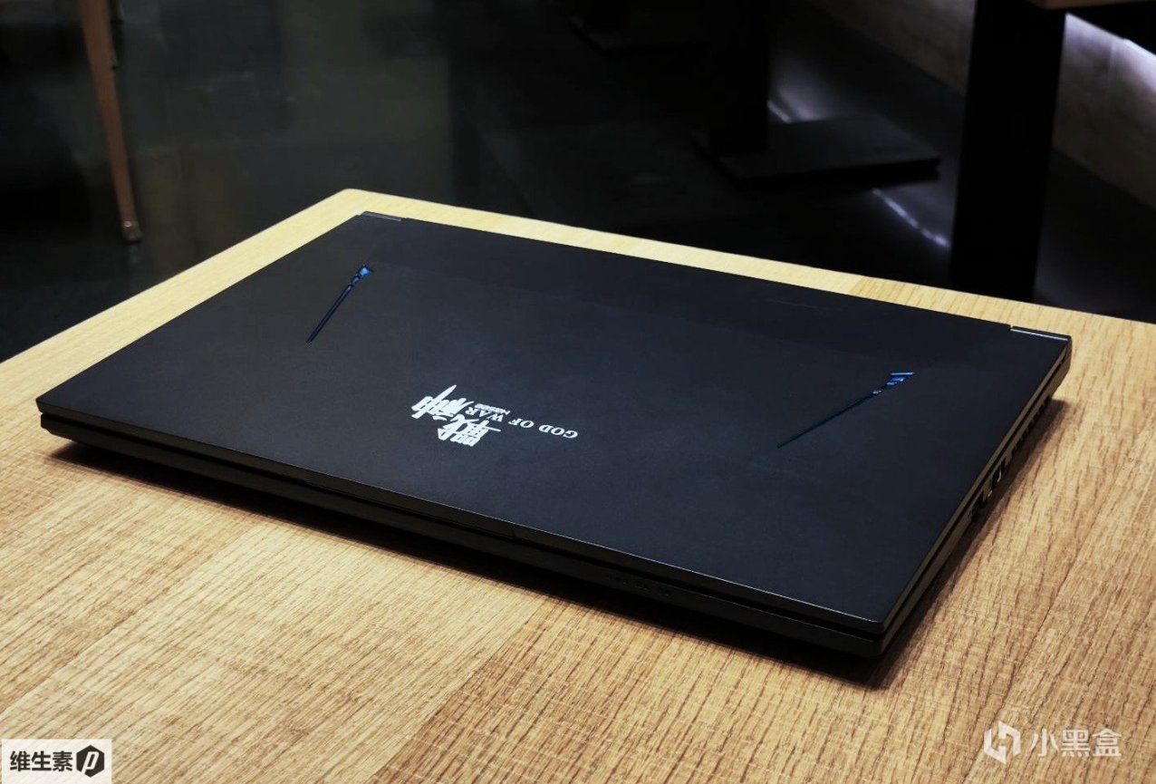 机器整体是黑色的设计,A面有一个非常有特色的白字标识了繁体的战神二字,并且配有 GOD OF WAR 的英文,和小小的品牌名称 Hasee 。