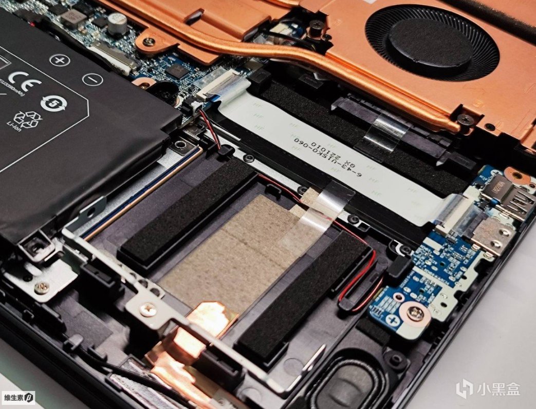 机器有一个M2固态硬盘位,上面有一个硅胶导热垫辅助撒热到D壳的一个金属部件上。