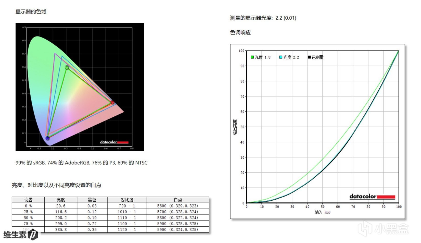 色调响应良好,亮度均匀性良好,屏幕的色准表现很不错。