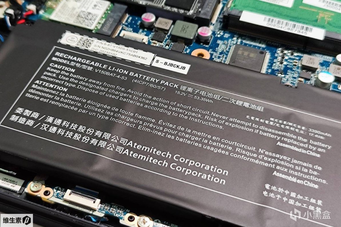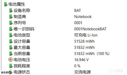 电池为 53.35Wh,不大,但对于这台游戏本来说较为正常。因为这个笔记本不太有便携外出的长续航设计需求。