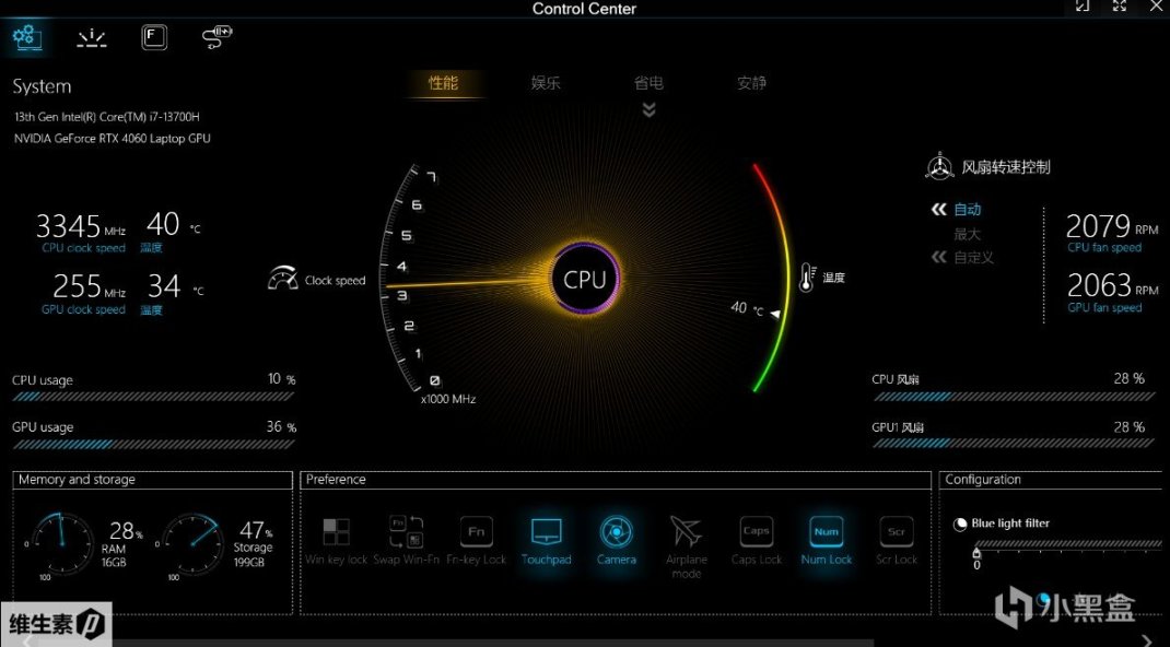 性能控制台里面有相关的配置可以控制性能模式以及风扇转速,如果介意噪音可以自己额外设置一下,或者带耳机玩游戏。