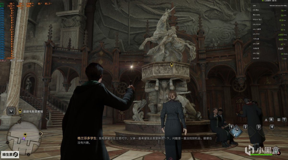 霍格沃茨之遗,开启 2560 分辨率和极致画质,关闭 DLSS 情况下,在学院里面帧数表现为 69 - 101。开启 DLSS 超级性能帧数表现为 111-198。