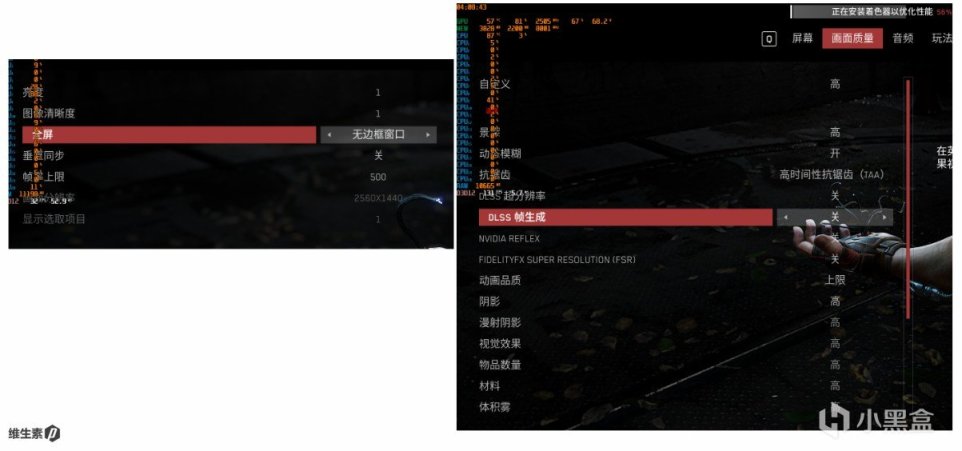 高画质,开启光追中等,DLSS质量自动,帧数是30-60帧数,平均48帧。DLSS开启超级性能有45-345帧,平均124帧。