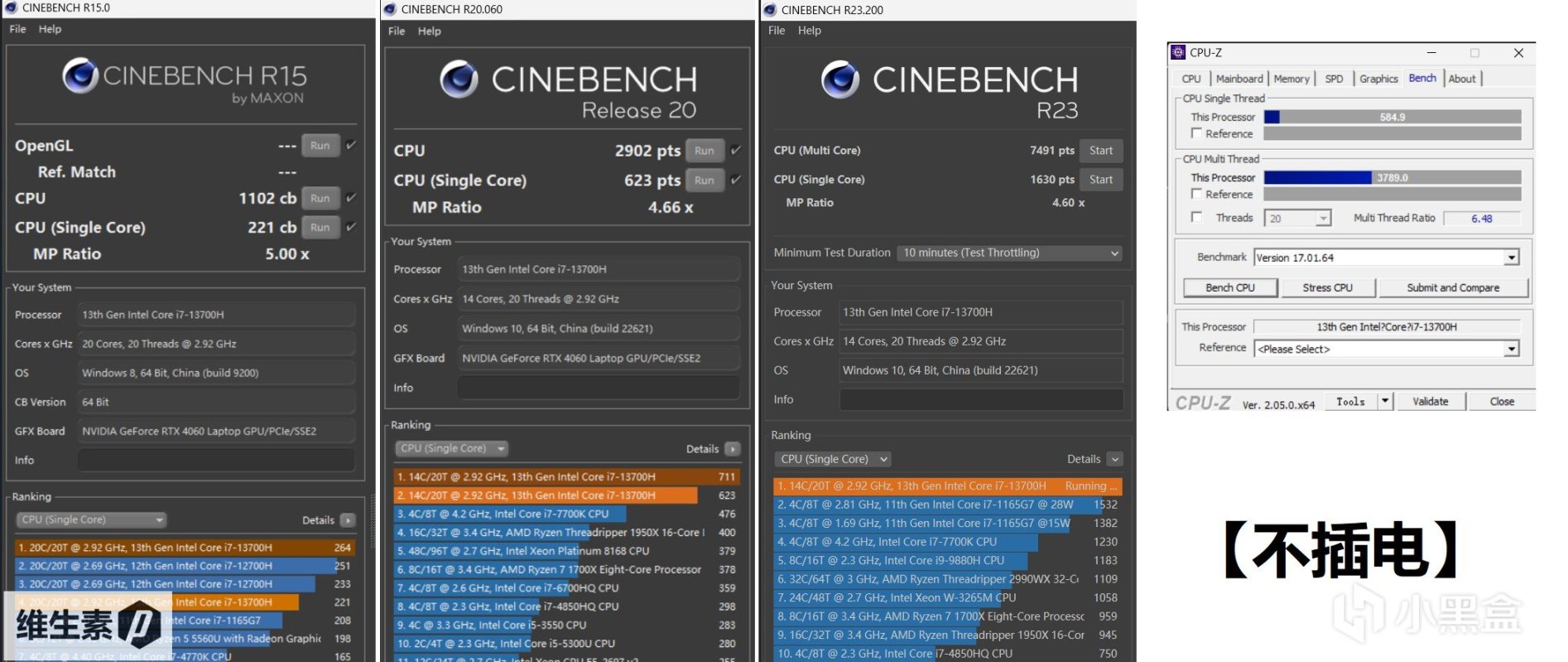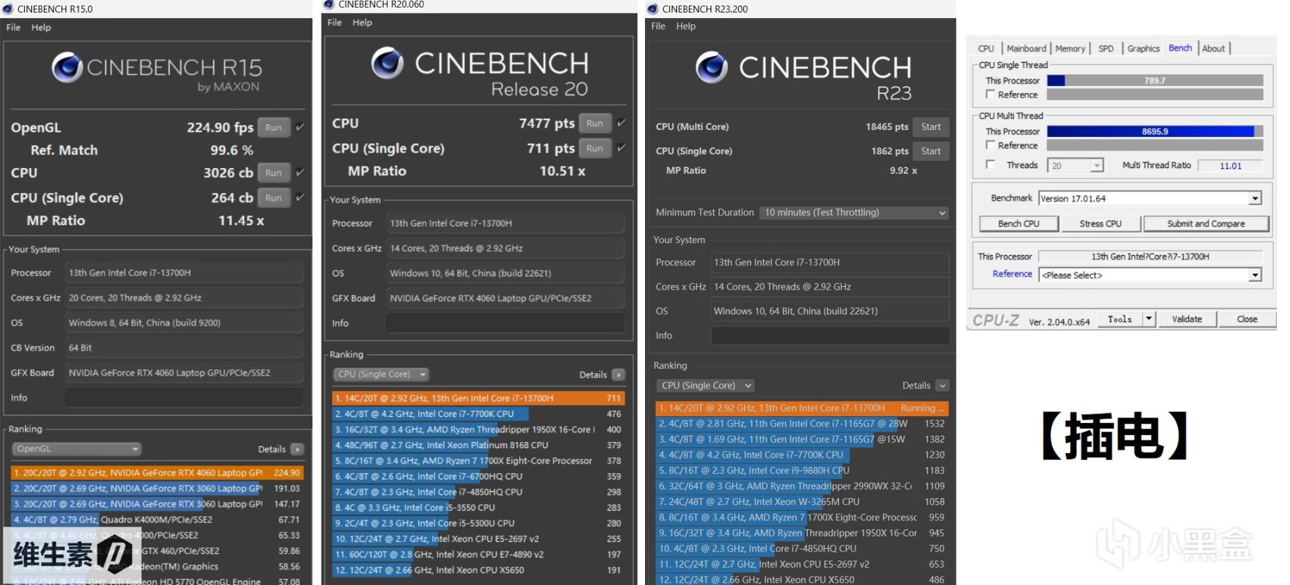 Cinebench 以及 CPUZ 相关跑分如下图所示。